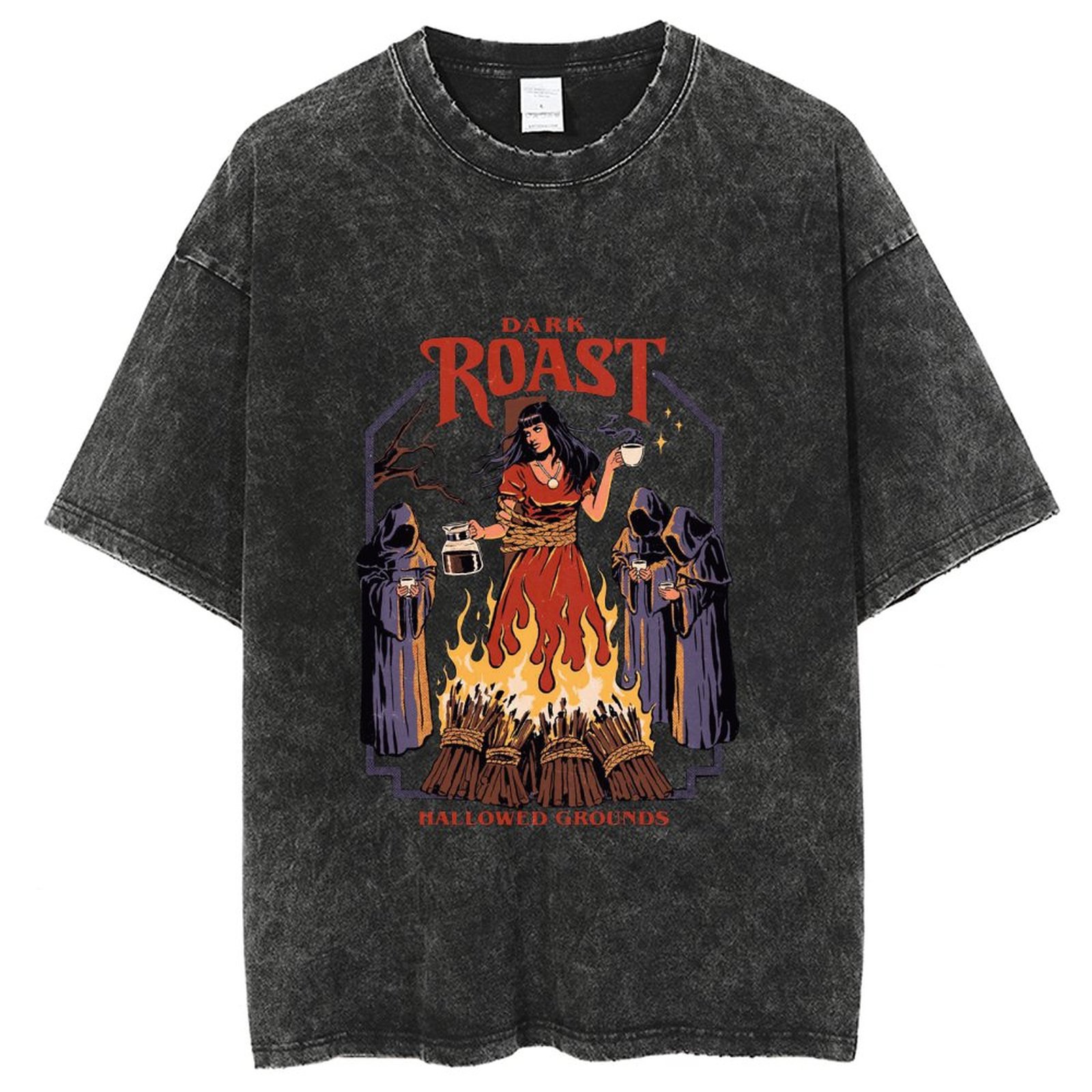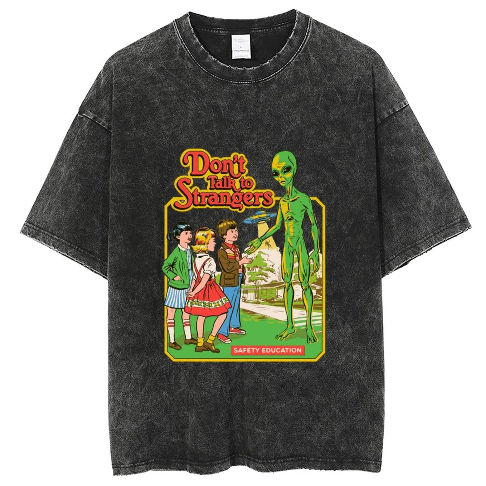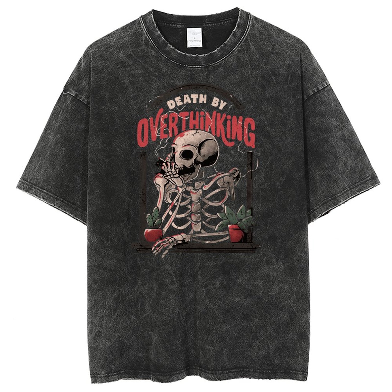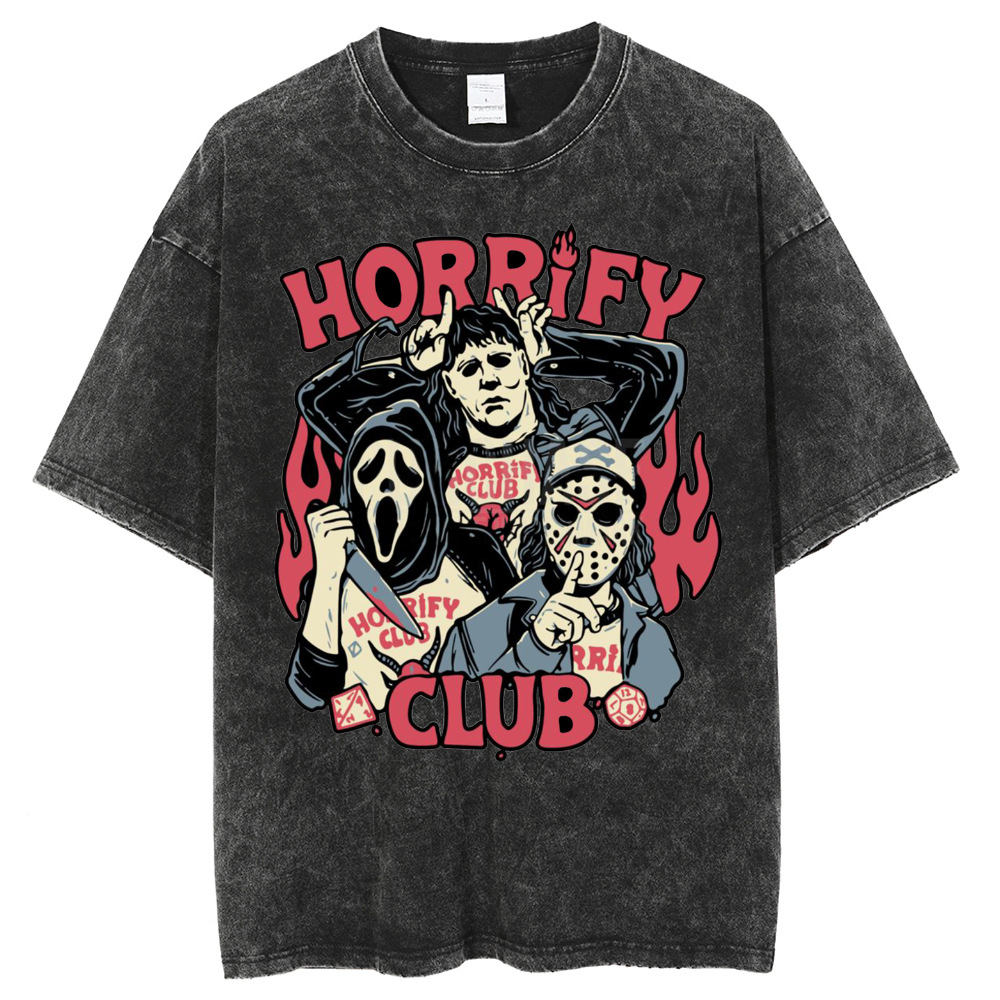 American style hip hop skull pattern cat print T-shirt