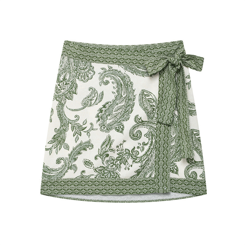 American Style Lace-up Bow Decorative Printed Sarong Skirt