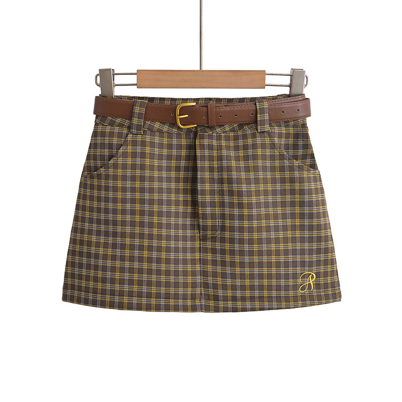 American Style Retro College Style Plaid Summer New Low Waist Hip-wrapped A- Line Skirt