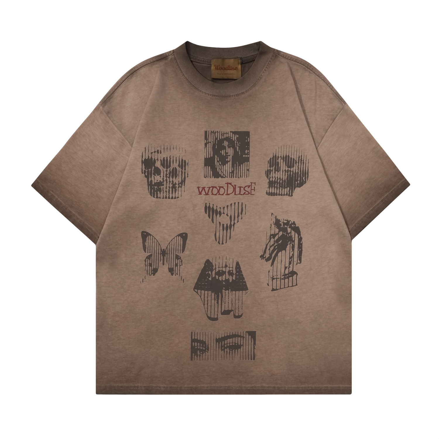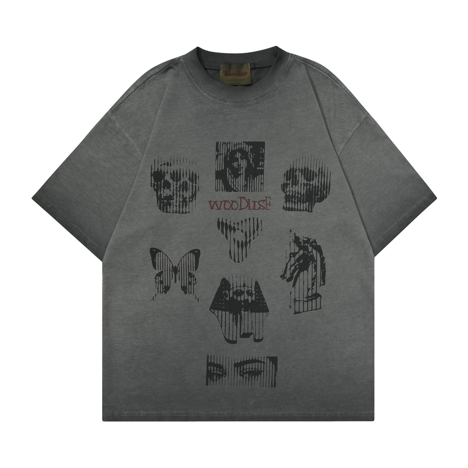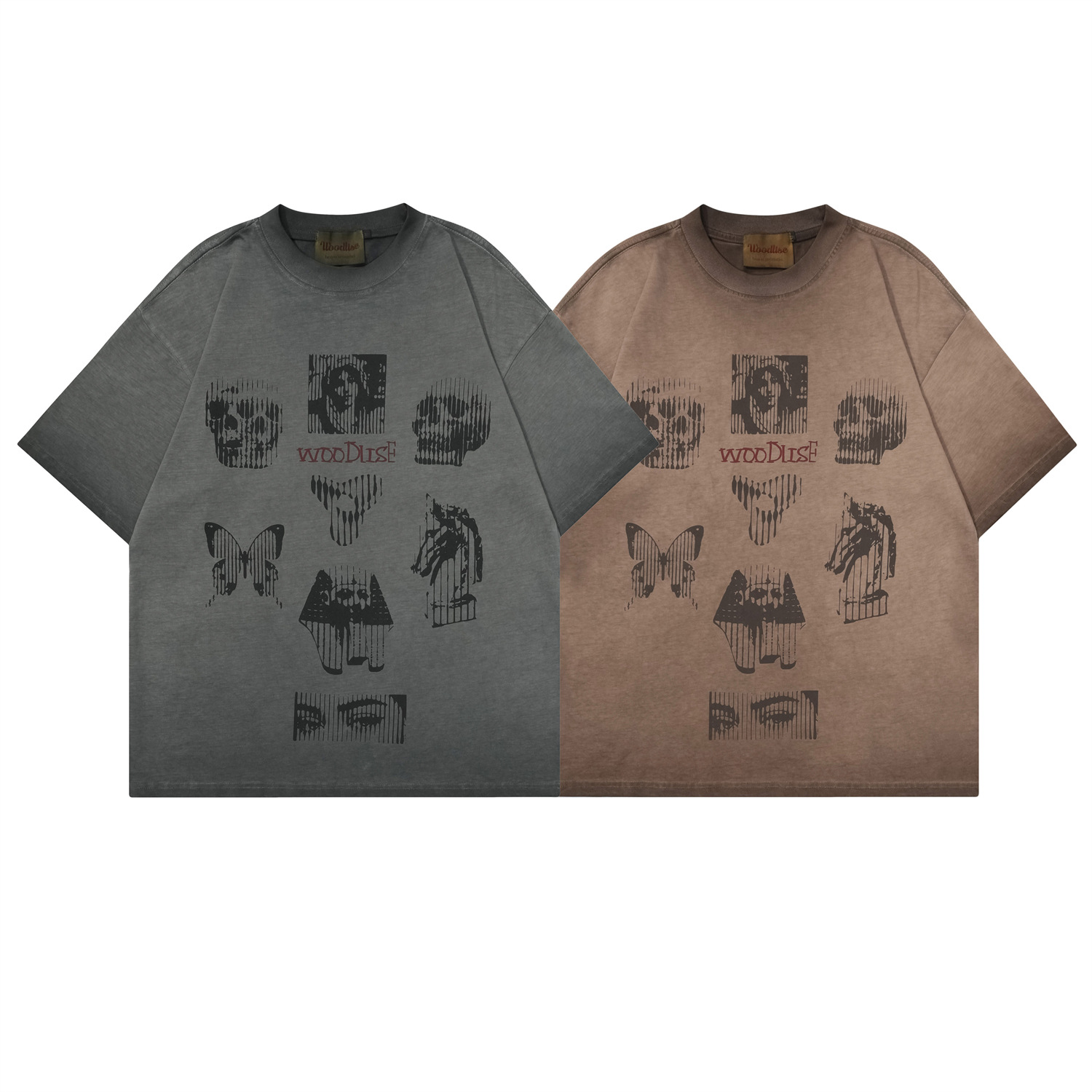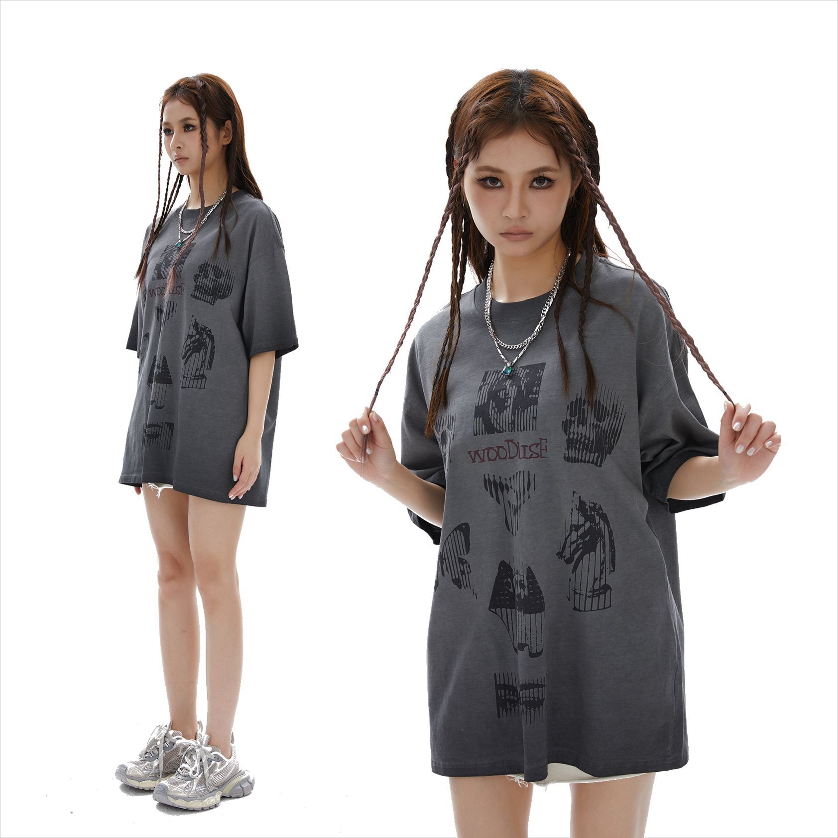 American Style Retro Fashion Brand Washed Skull Design Oversize Couple Short Sleeve