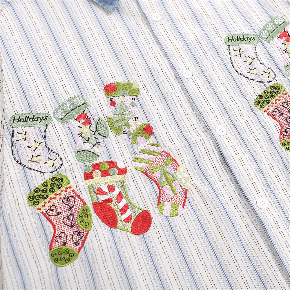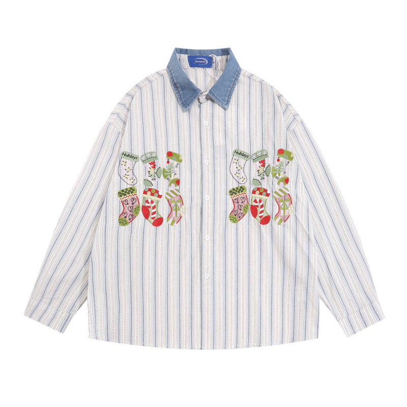 American-style Street Fashion Cartoon Embroidered Long-sleeved Shirt