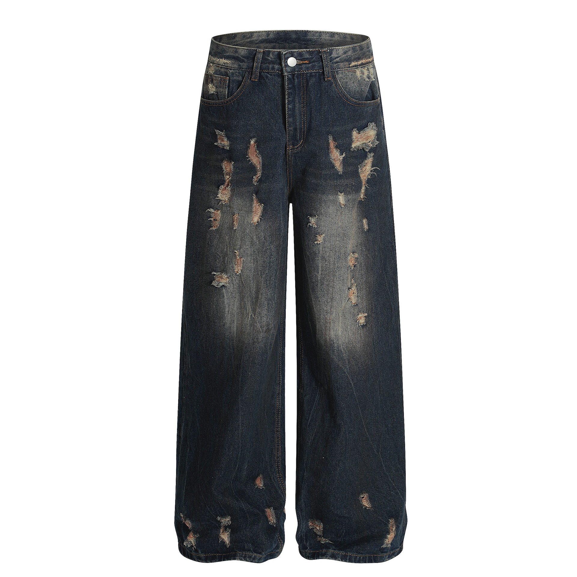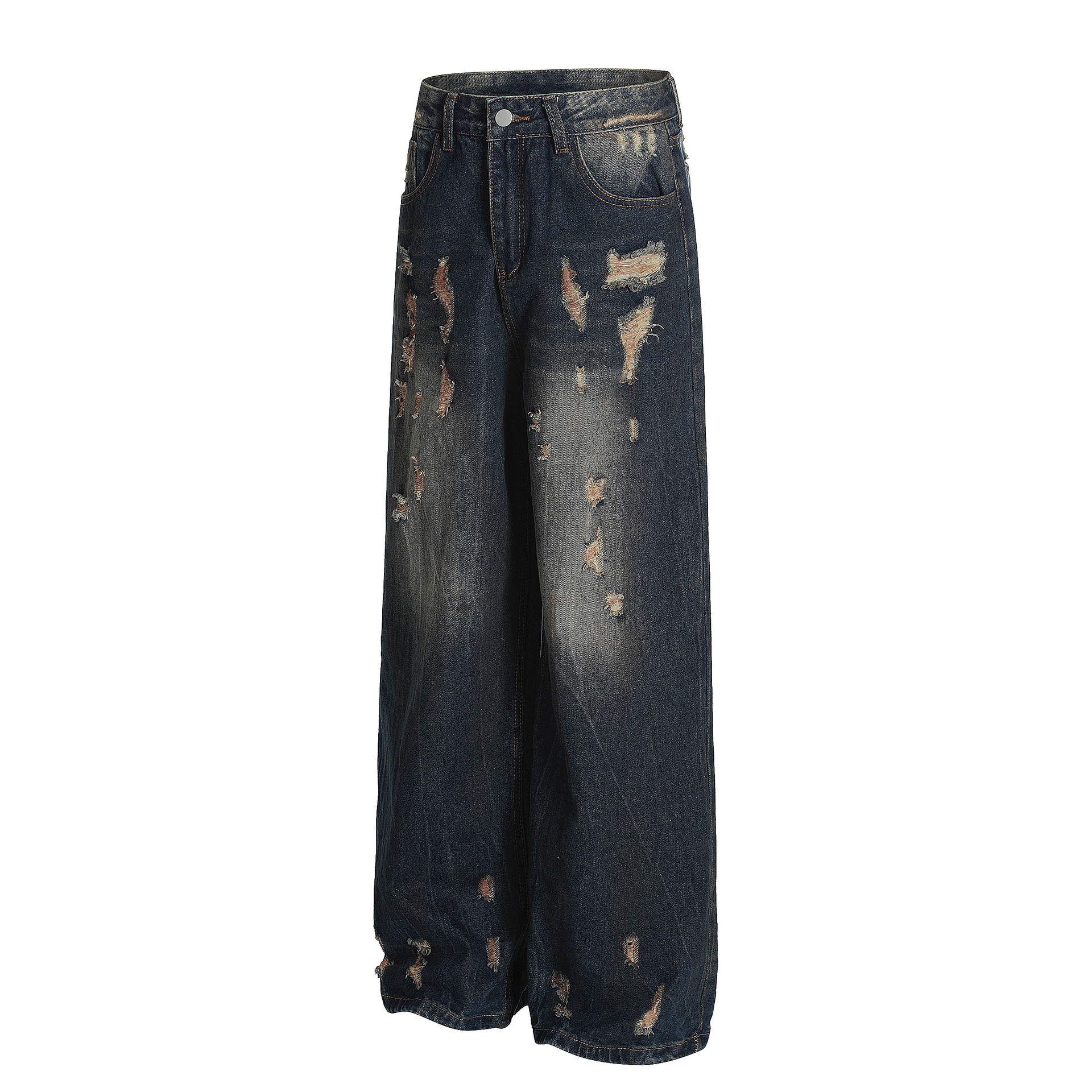 American-style Vintage Distressed Worn Torn And Ripped Jeans