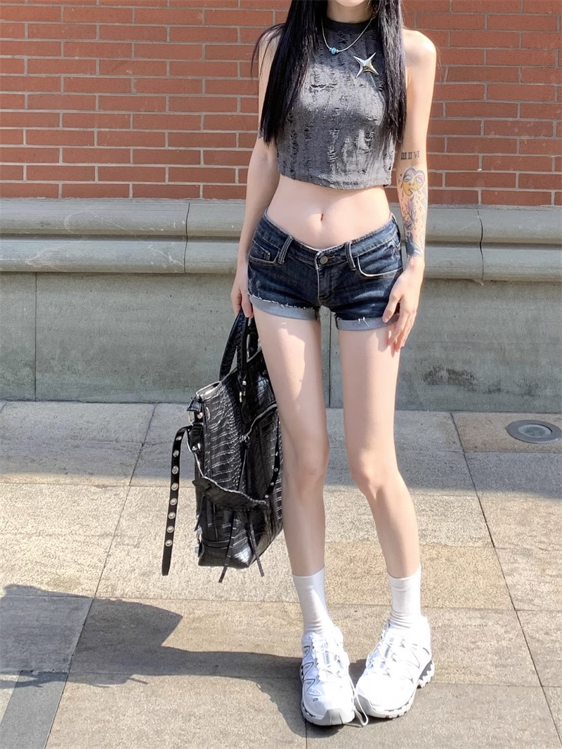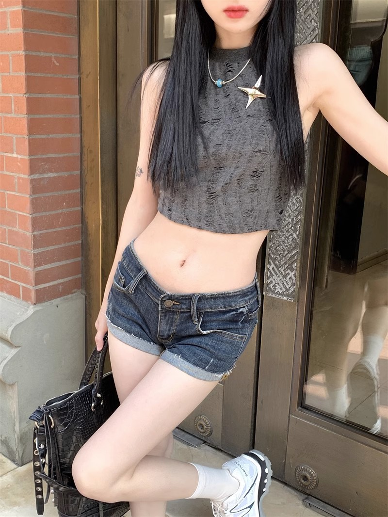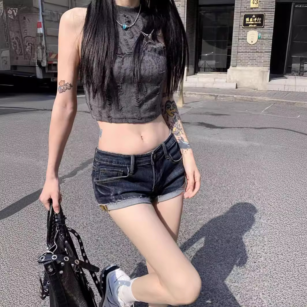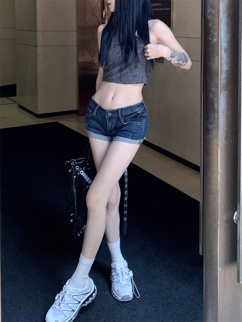 American-style Vintage Spicy Girl Denim Ultra-short Shorts For Women