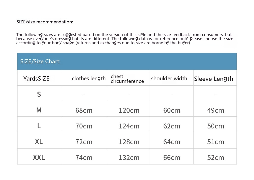 1. Asian sizes are 1 to 2 sizes smaller than European and American people. Choose the larger size if your size between two sizes. Please allow 2-3cm differences due to manual measurement. 2. Please check the size chart carefully before you buy the item, if you don't know how to choose size, please contact our customer service. 3.As you know, the different computers display colors differently, the color of the actual item may vary slightly from the following images.