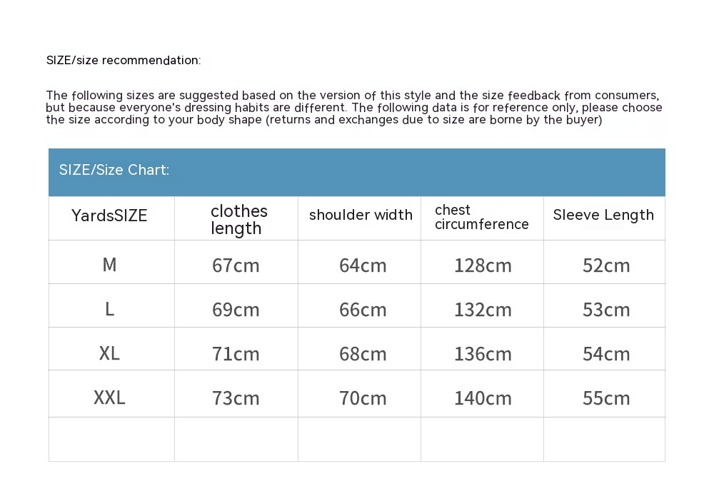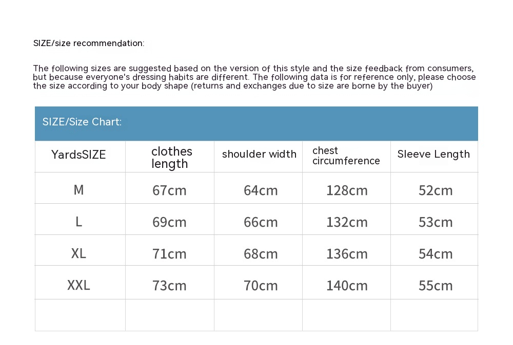 1Asian sizes are 1 to 2 sizes smaller than European and American people. Choose the larger size if your size between two sizes. Please allow 2-3cm differences due to manual measurement. 2. Please check the size chart carefully before you buy the item, if you don't know how to choose size, please contact our customer service. 3.As you know, the different computers display colors differently, the color of the actual item may vary slightly from the following images.