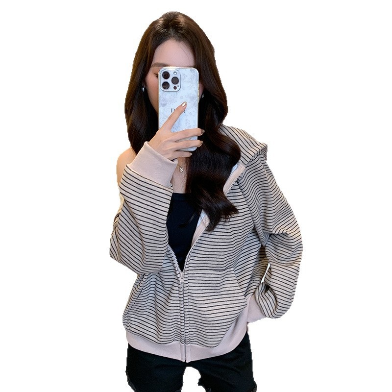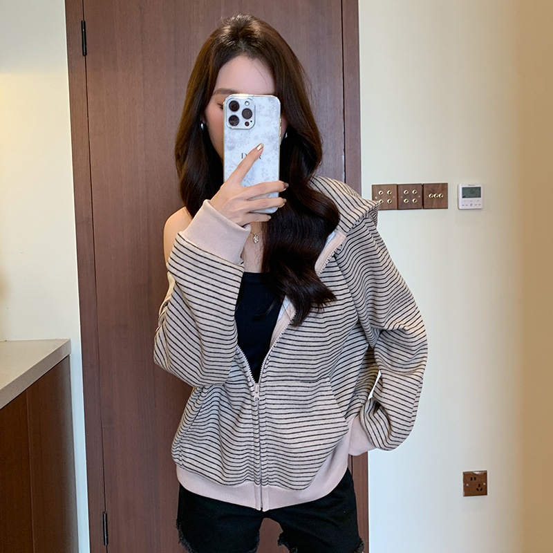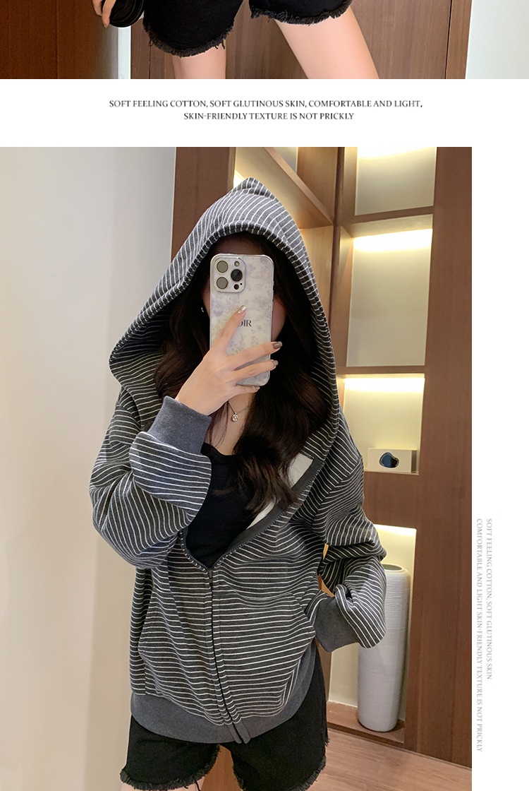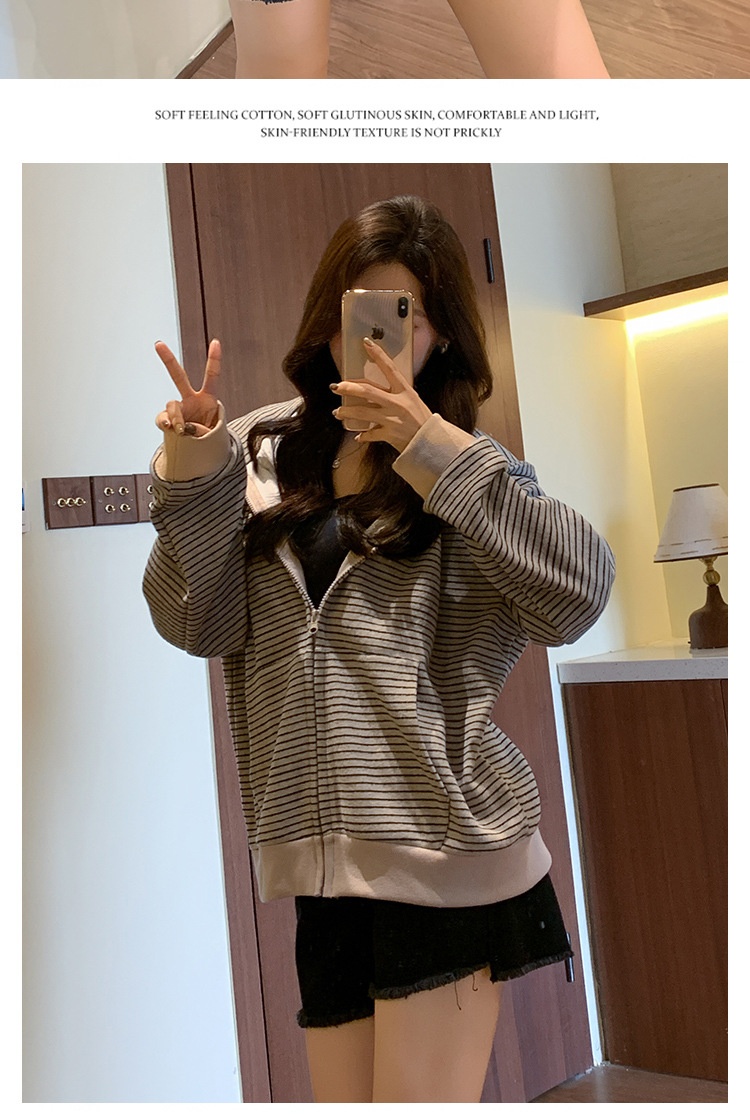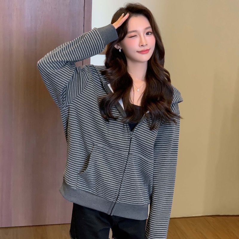 American Vintage Zip-up Loose Lazy Cardigan Long Sleeve Coat
