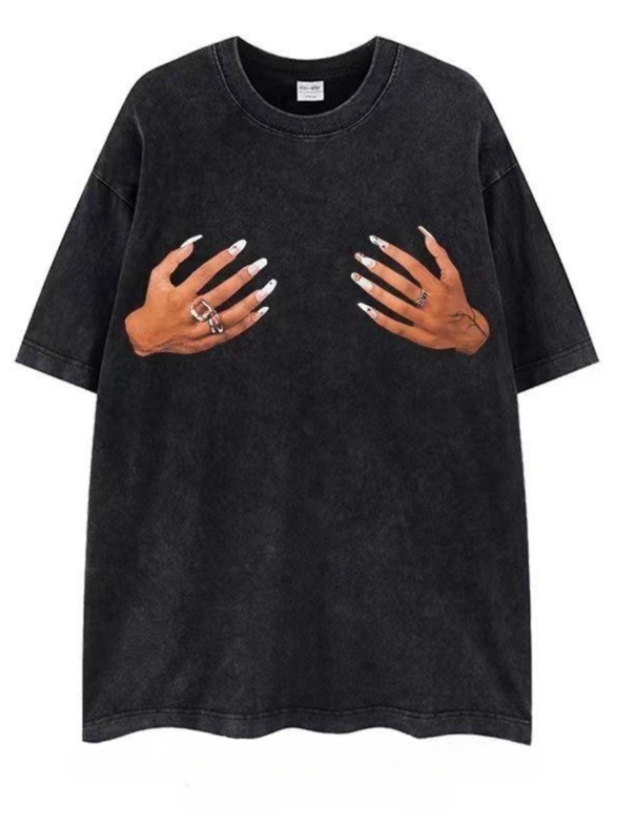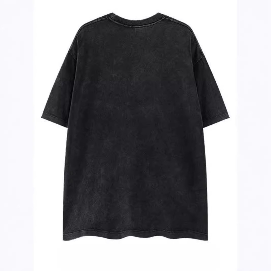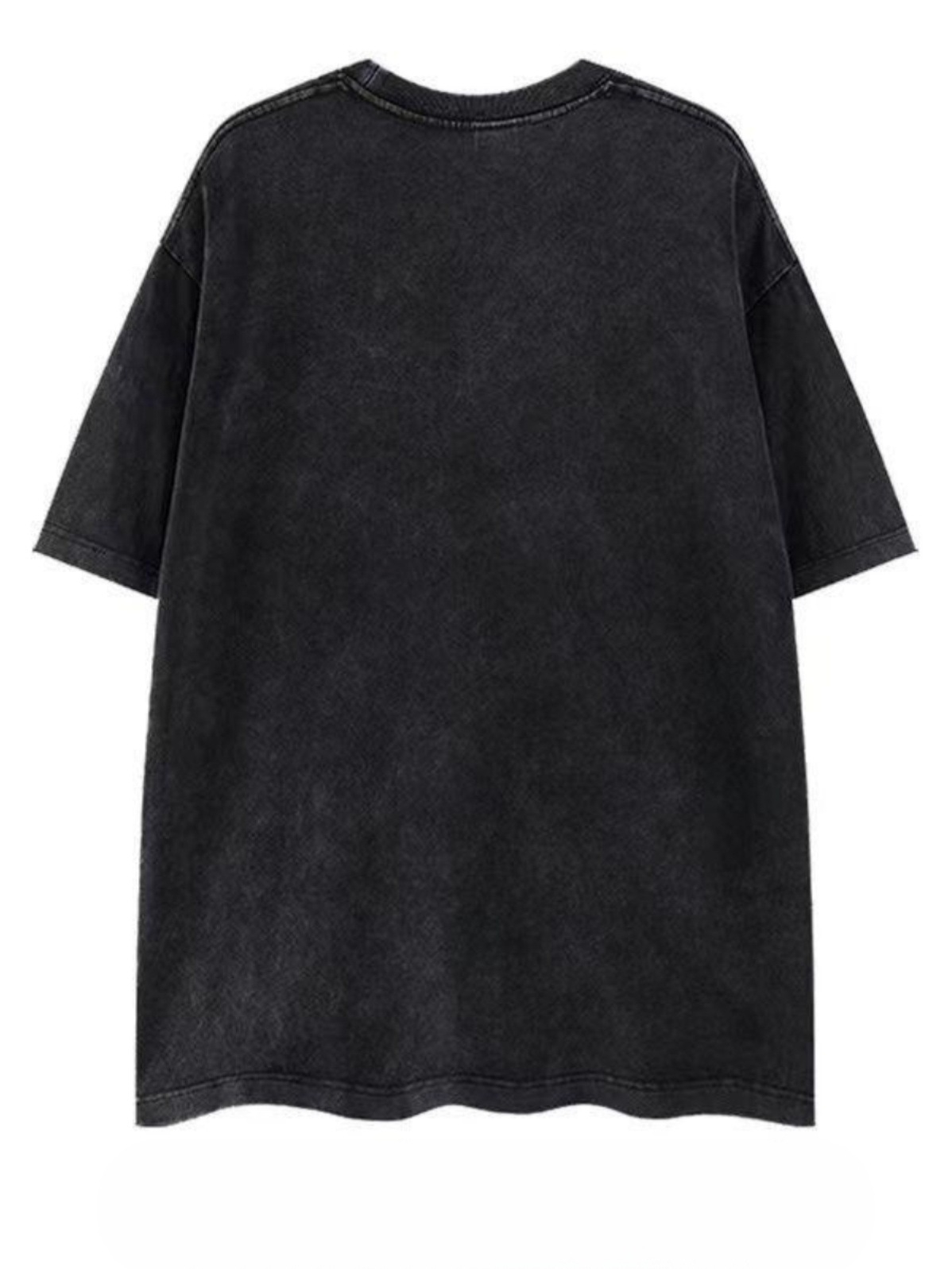 American Washed Distressed Spoof Finger Print Short Sleeve