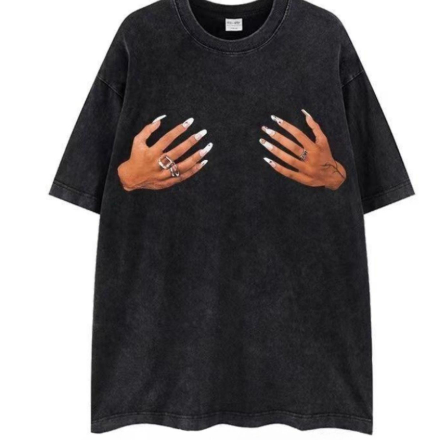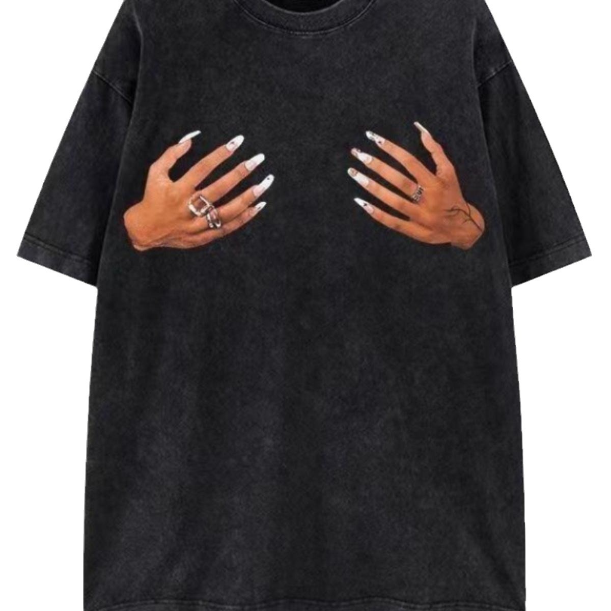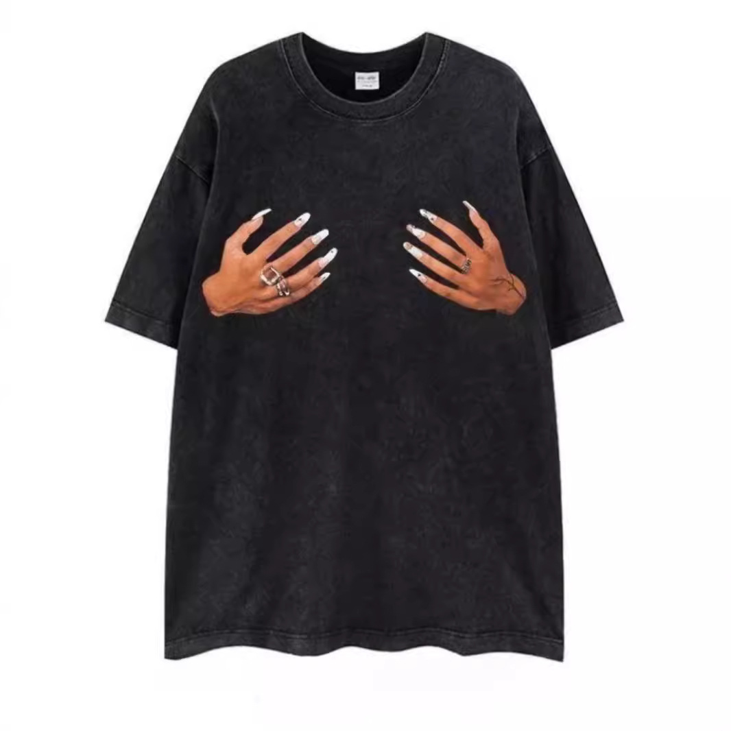 American Washed Distressed Spoof Finger Print Short Sleeve