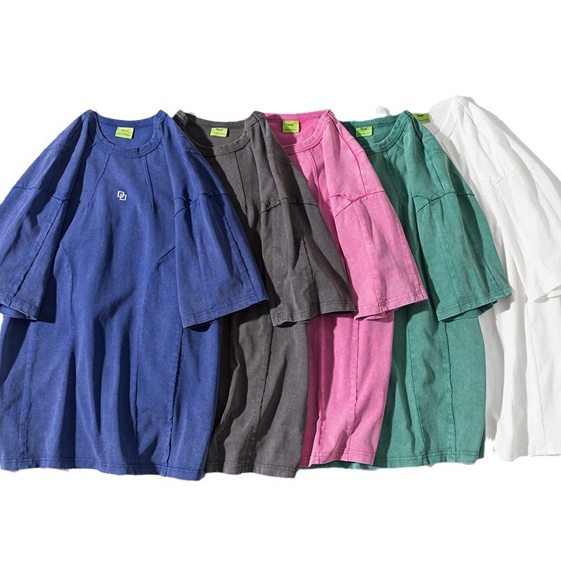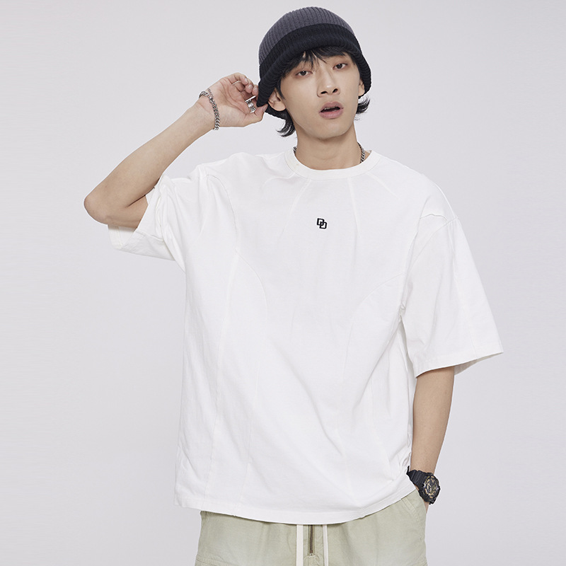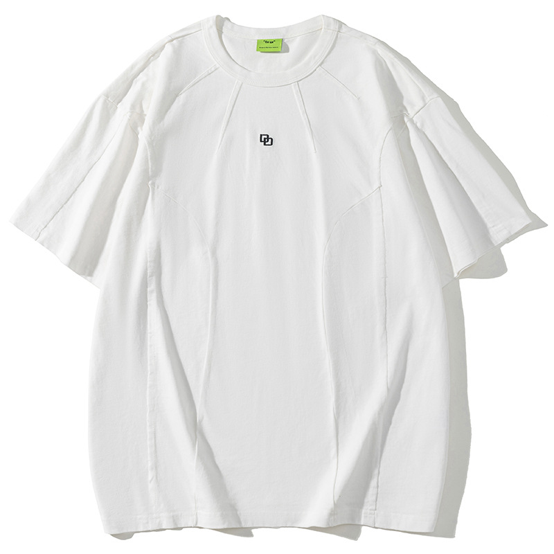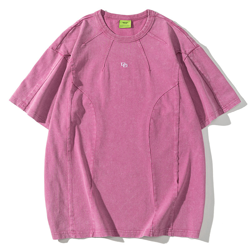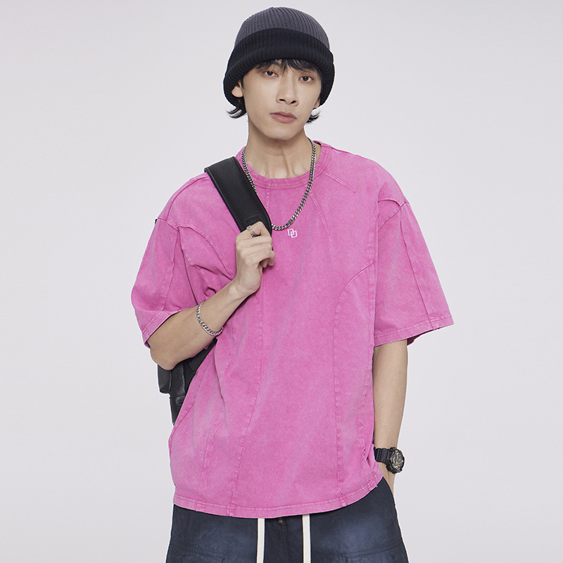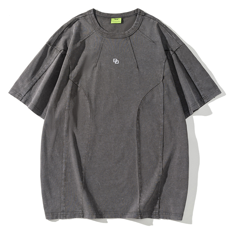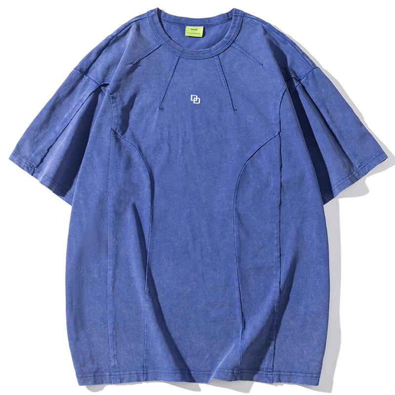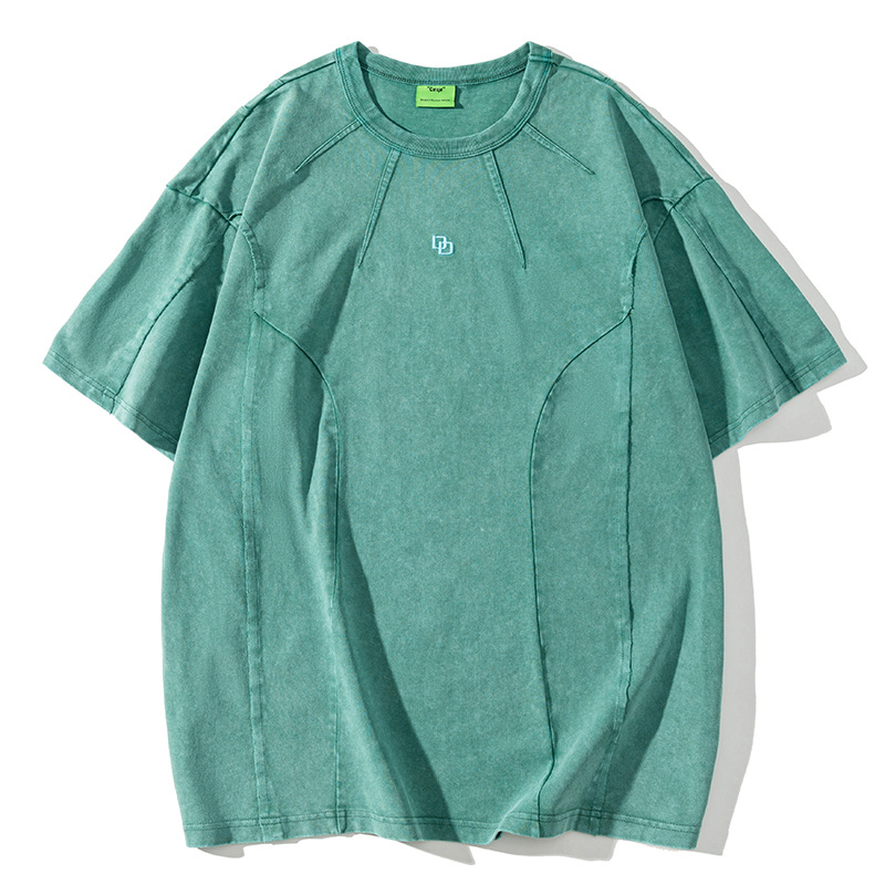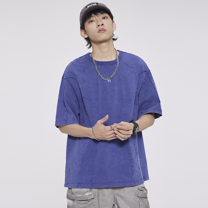 American Washed Patchwork Short-sleeved T-shirt Men