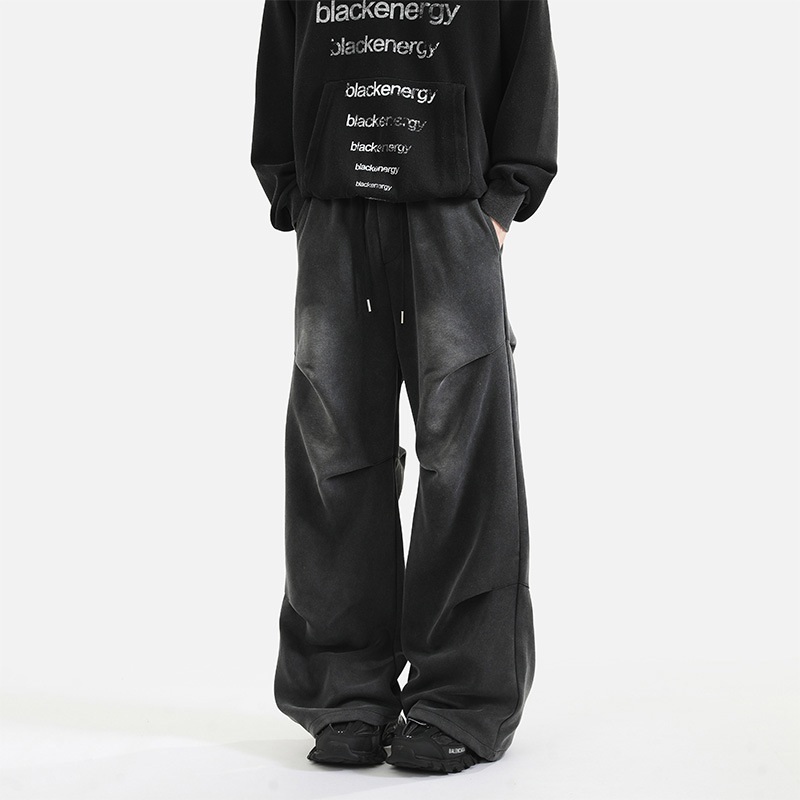 American Washed Sweatpants Men's Pleated Design Sense Straight Loose Pants