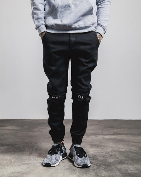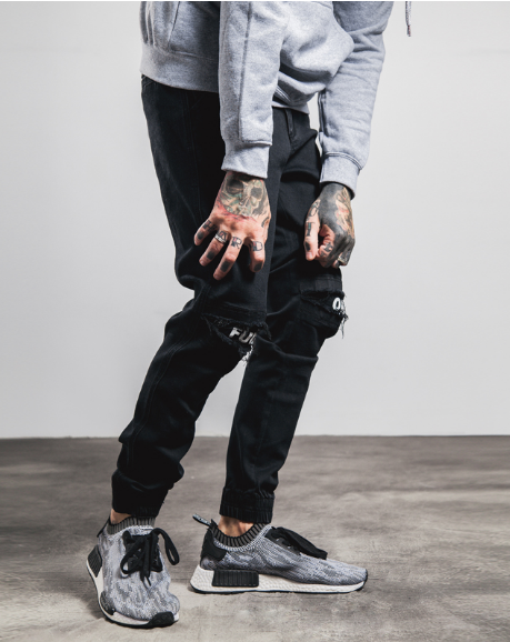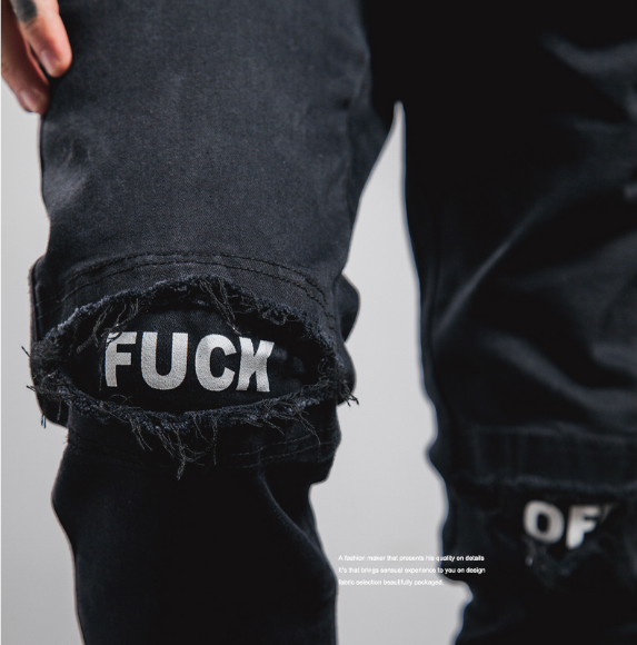 American West Coast street fashion brand hip hop hole elastic patch printing casual trousers male youth beam pants