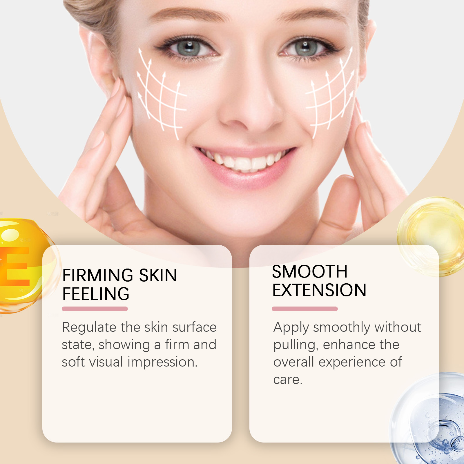 Our facial moisturizer is carefully formulated with vitamin E(tocopherol) and retinol palmitate. Designed specifically to regulate the surface condition of the skin and present a firm and soft visual impression. The usage method is extremely convenient: clean the face and keep it dry. Take an appropriate amount of this product and apply it evenly to the face. Gently massage until absorbed. And it is applied smoothly without any pulling, enhancing the overall care experience.