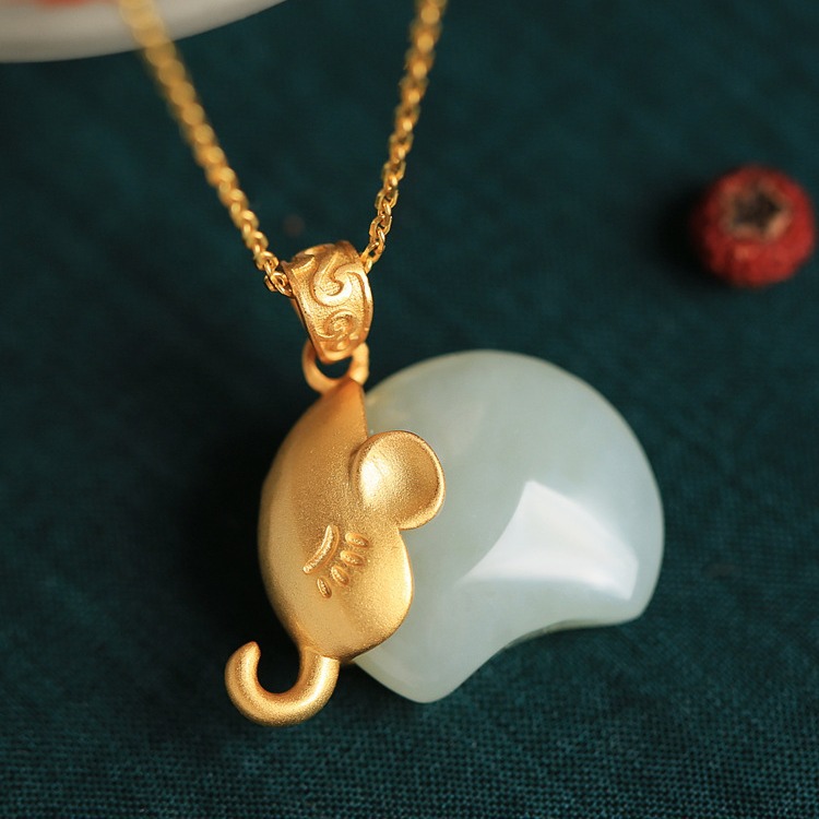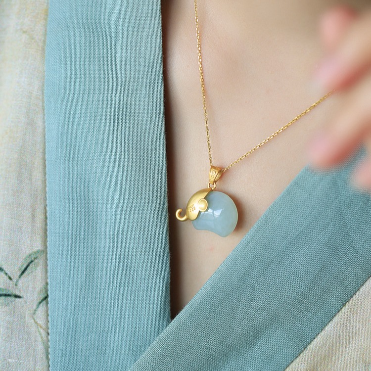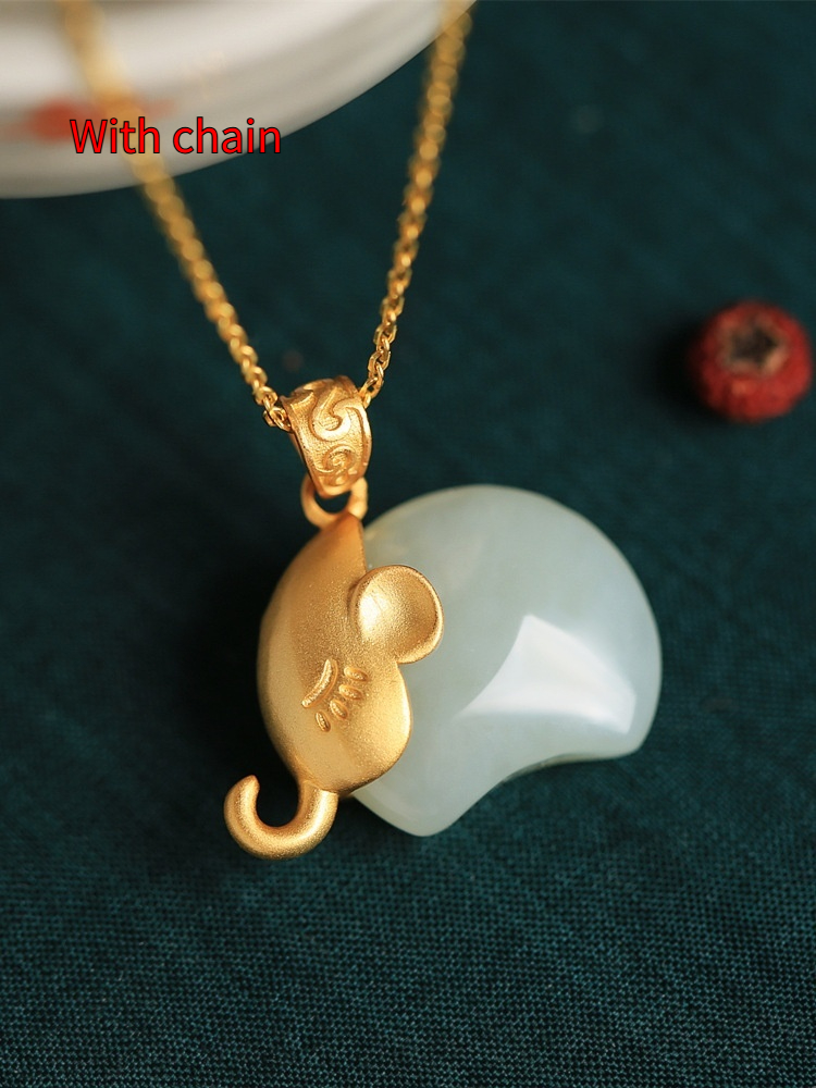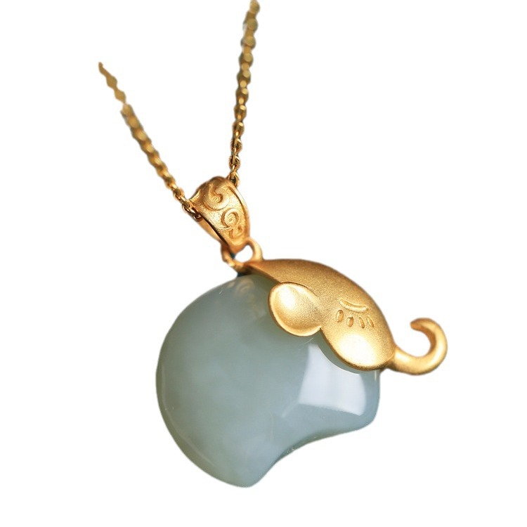 Color: Hetian jade small elephant Jade (single pendant), Hetian jade small elephant Jade (with 40 5CM gold chain)