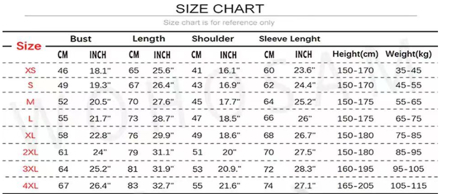 1. Asian sizes are 1 to 2 sizes smaller than European and American people. Choose the larger size if your size between two sizes. Please allow 2-3cm differences due to manual measurement. 2. Please check the size chart carefully before you buy the item, if you don't know how to choose size, please contact our customer service. 3.As you know, the different computers display colors differently, the color of the actual item may vary slightly from the following images.