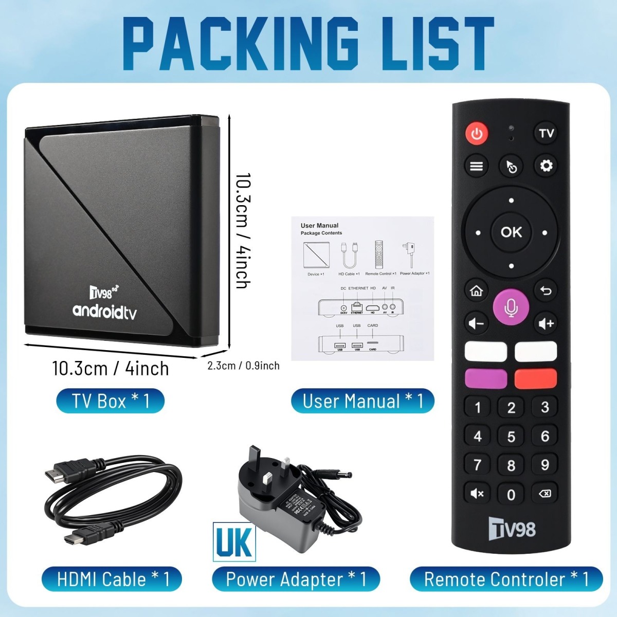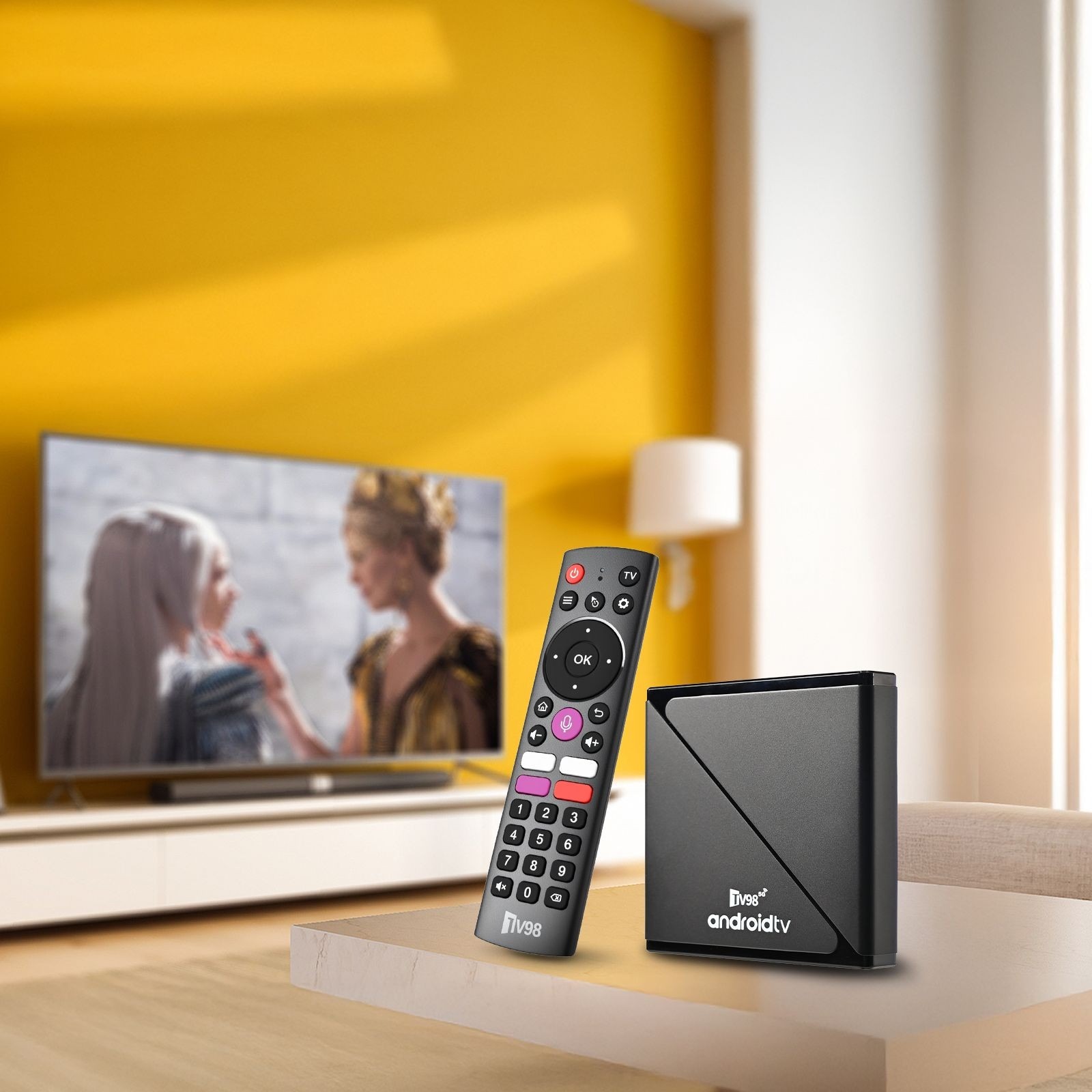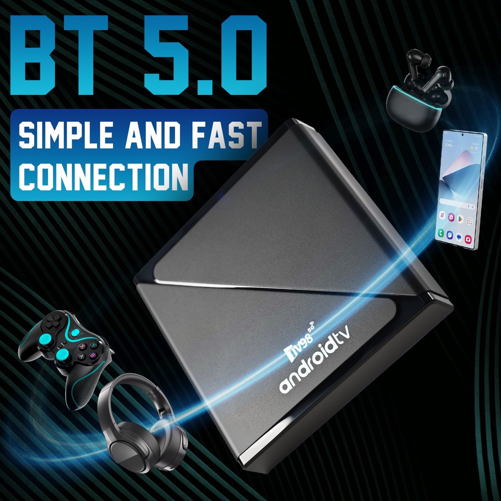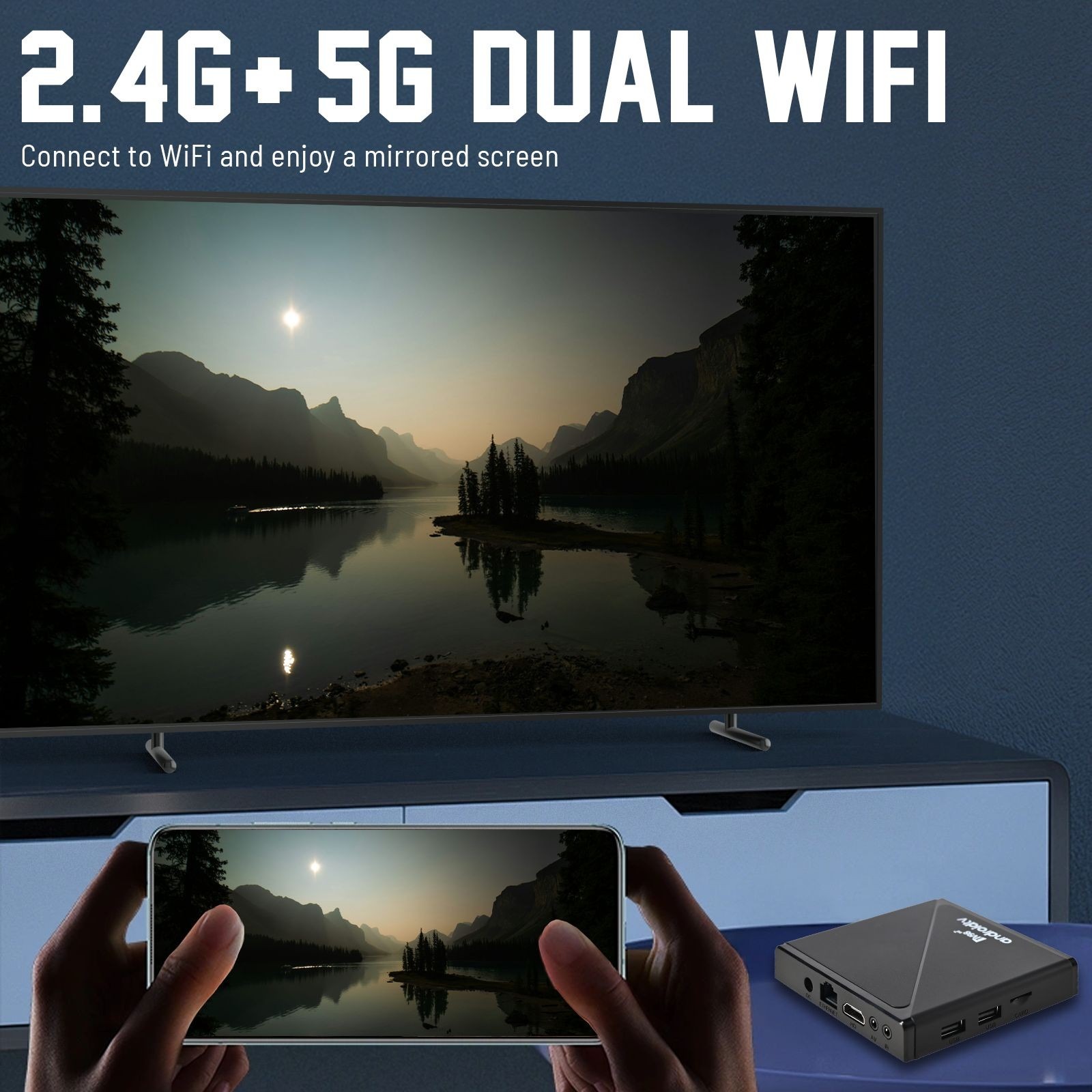 Features:1. dual band connectivity: experience uninterrupted connectivity with dual Wi-Fi bands and BT5.0 voice command features. This smart TV box keeps you seamlessly connected at all times.