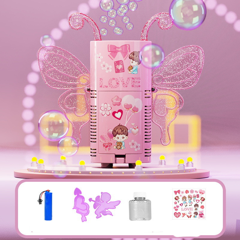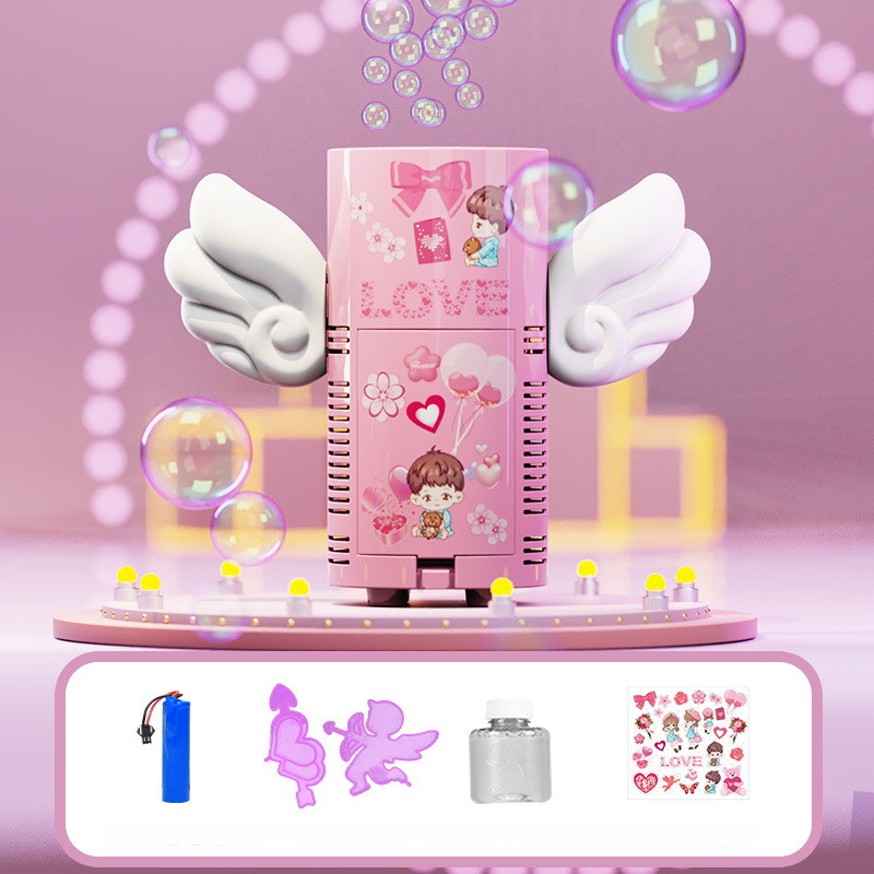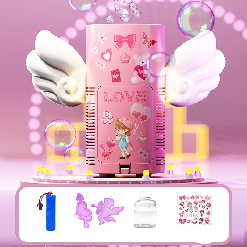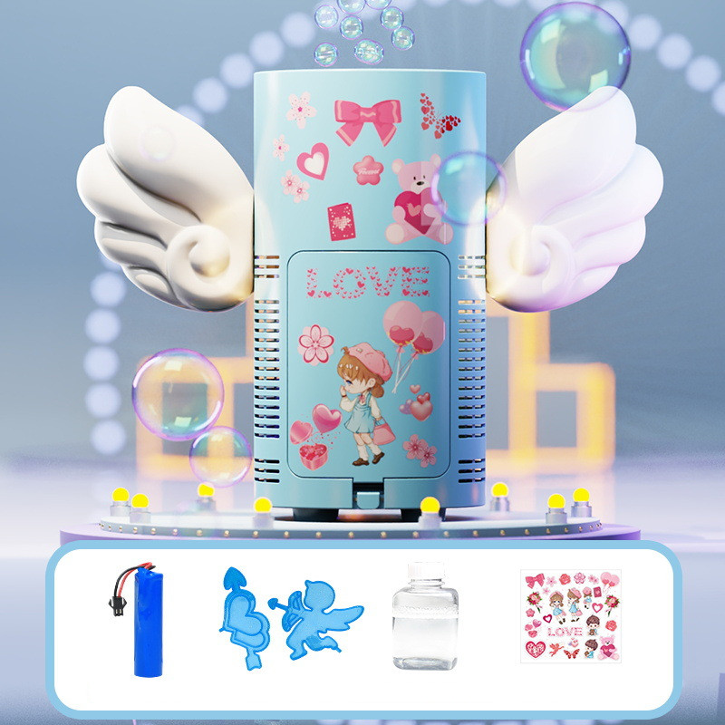 Bubble machine * 1 Lithium battery * 1 Decoration * 2, Bubble water * 1, Sticker * 1