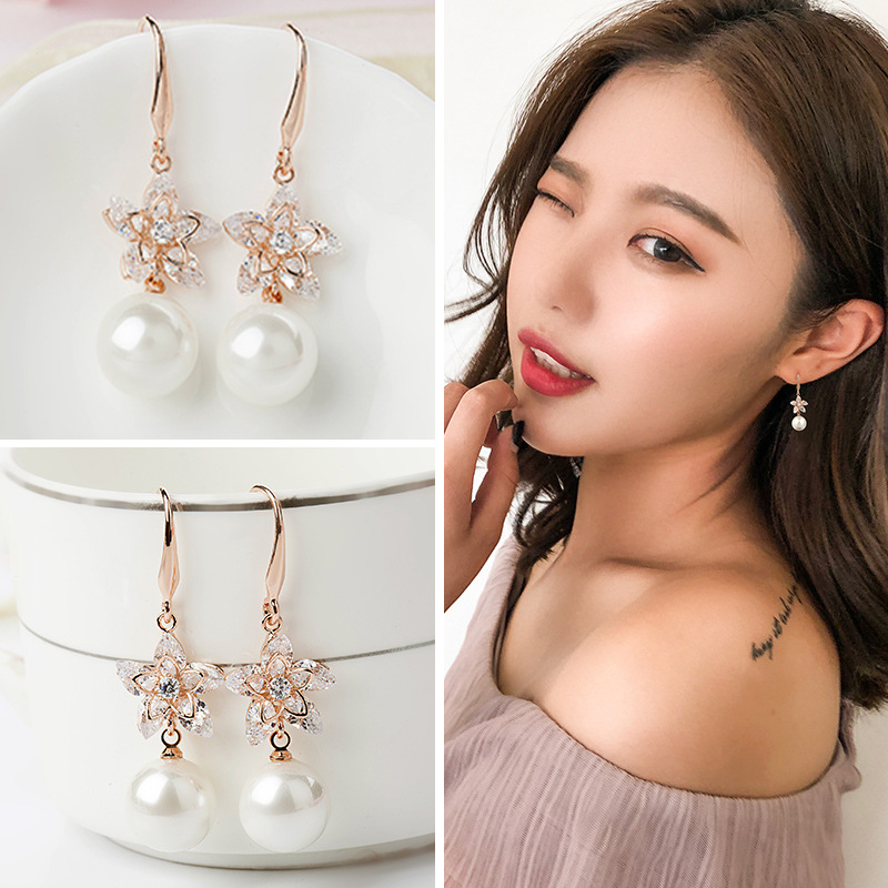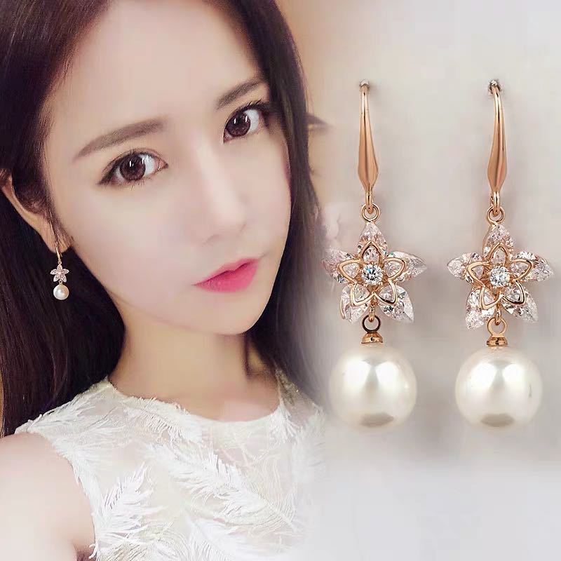Product information:Style: C5004 white pearl earringsMaterial: alloyModeling: flowersPacking list:A pair of earrings