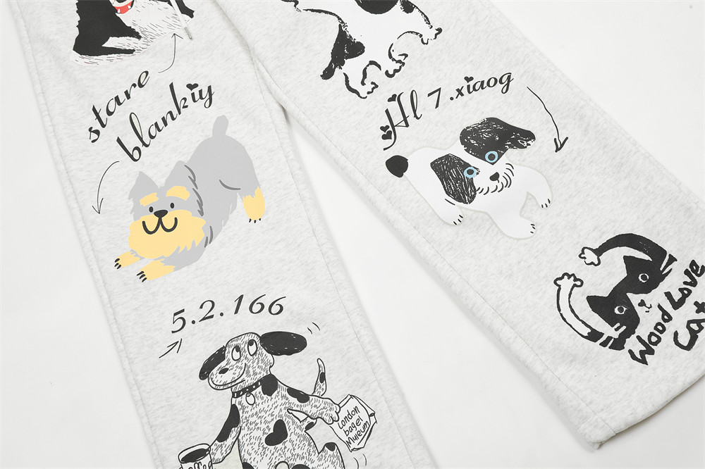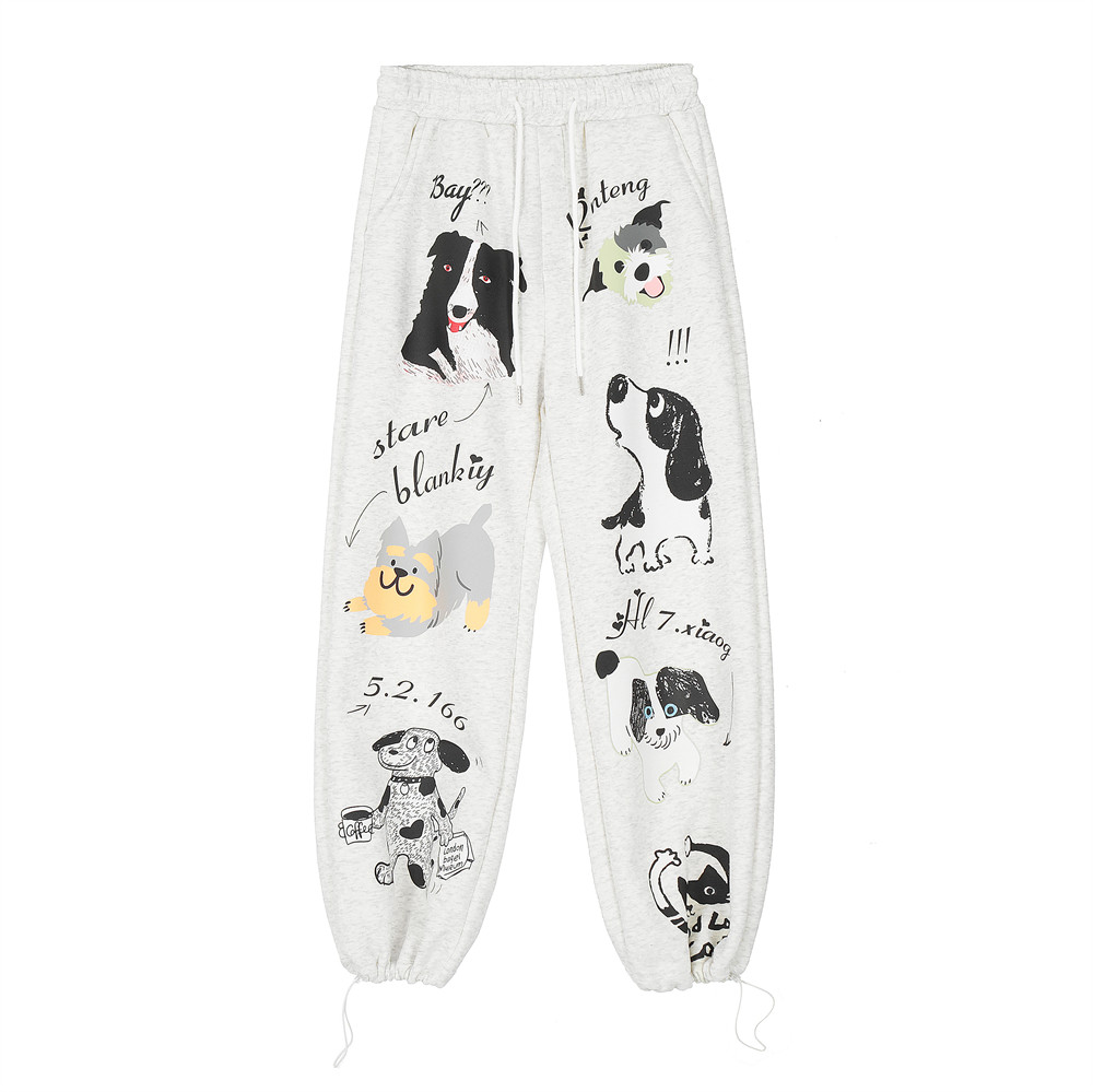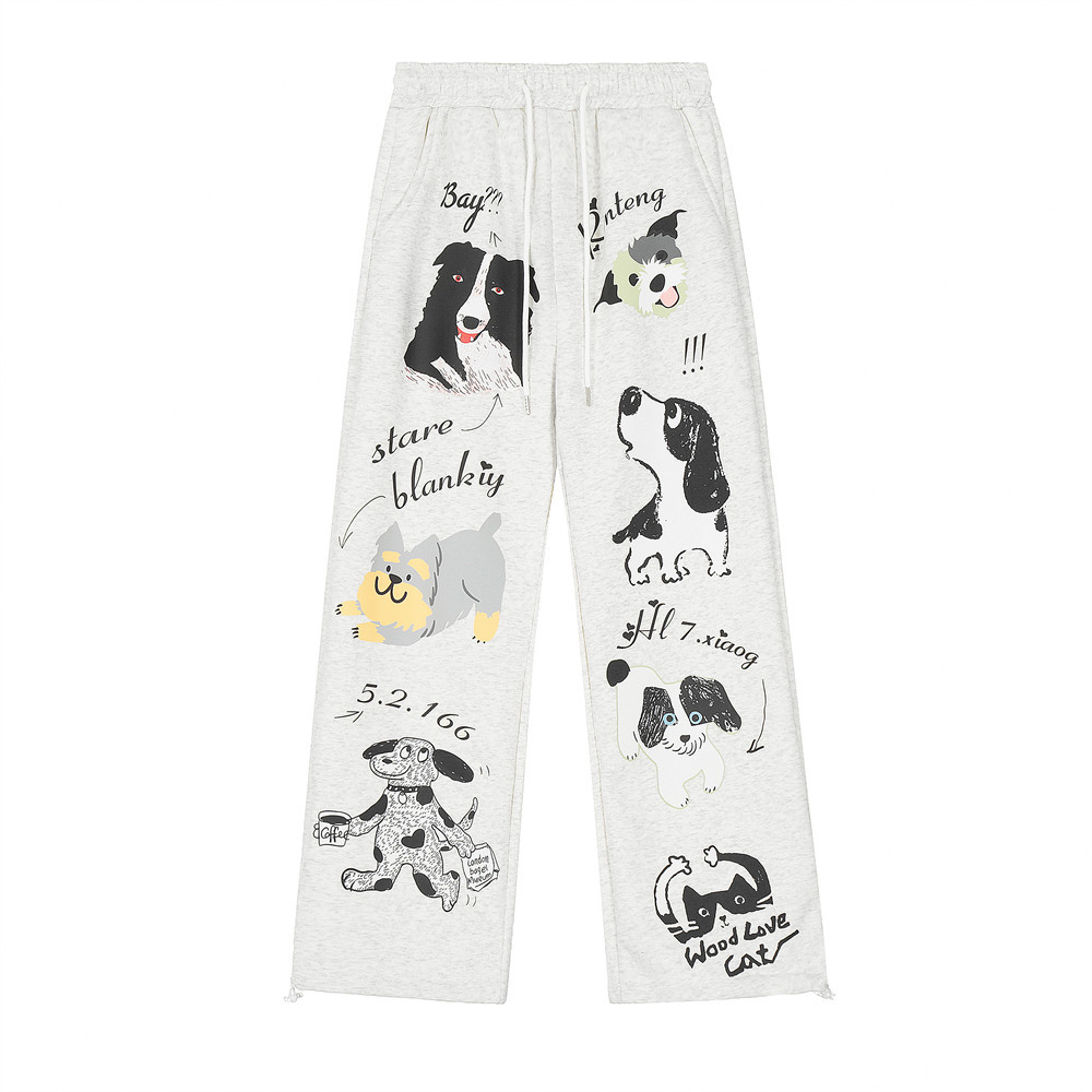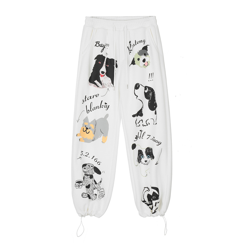 Animal Abstract Printing Velvet Padded Casual Pants Male
