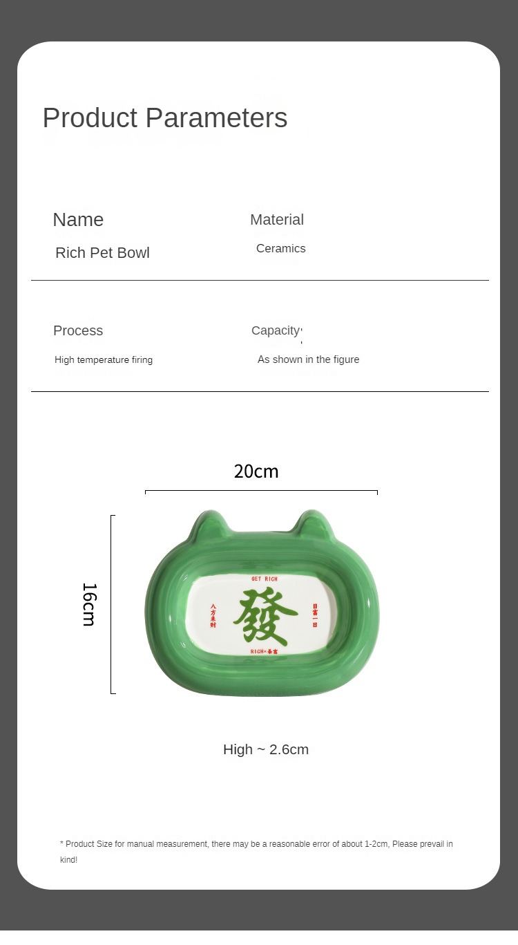 Animal Dish Ceramic Cat Bowl Snack Dish Cat Rice Bowl Water Drink Cat Food Bowl Food Bowl Dog Pet Bowl Wealth Creation Idea