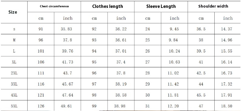 Size: S,M,L,XL,2XL,3XL,4XL,5XL