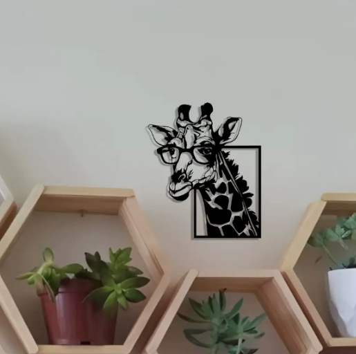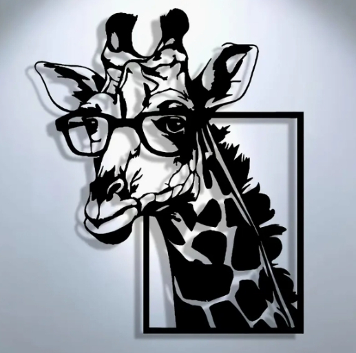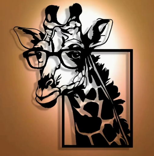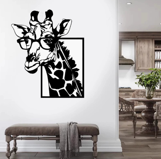 Animal Wearing Glasses Giraffe Silhouette Wall Hanging