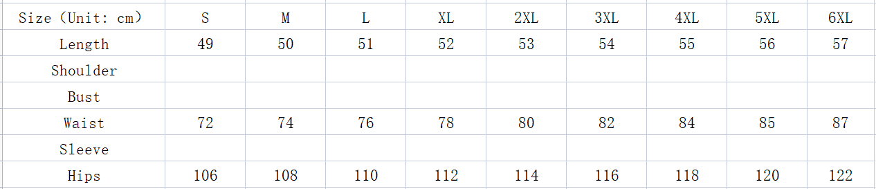 Size: S M L XL 2XL 3XL 4XL 5XL 6XL