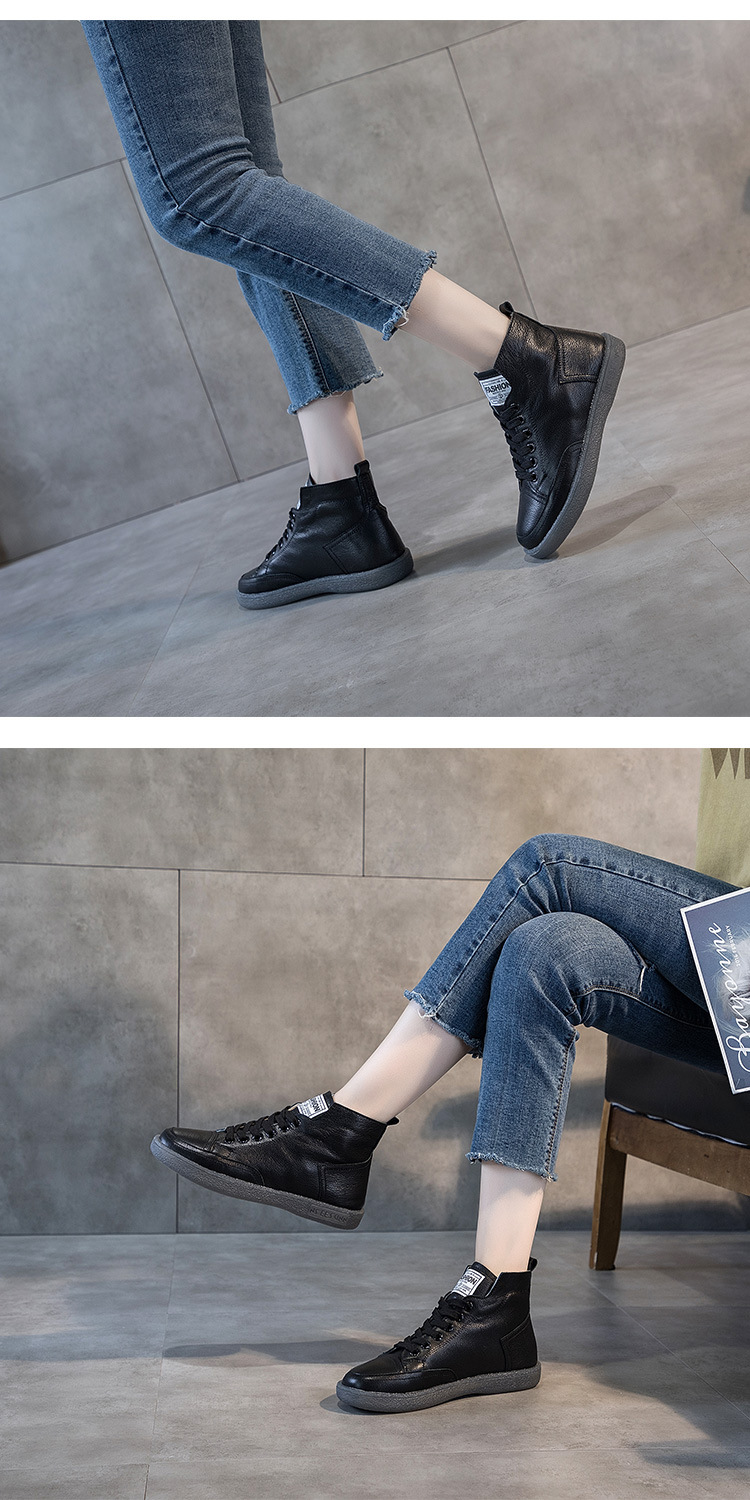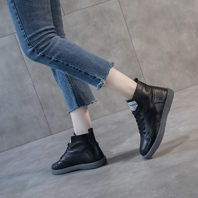 Ankle Boots Plus Size Autumn And Winter Wild Beef Tendon Soft Bottom Genuine Leather Shoes Flat Martens Boots