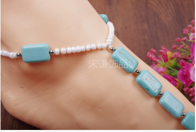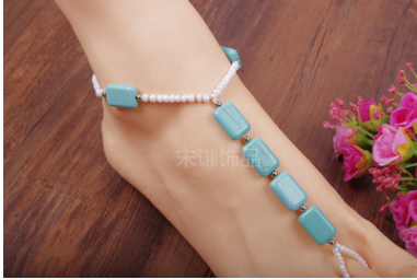 The summer heat exaggerated square TURQUOISE BEADS HANDMADE Fingerless Anklet