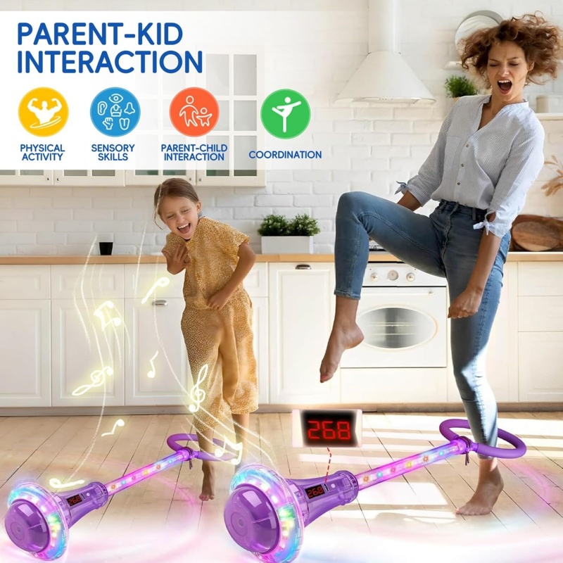 【Colorful Lighting Effects】The skip ball features a multi-color lighting design. With each jump, the flashing bar and wheels emit seven vibrant colors, creating a visual feast. After exercise, simply press a button to easily view the number of jumps (red), exercise time (blue, minutes), and distance (green, miles), clearly recording every step of progress.
