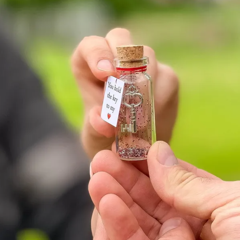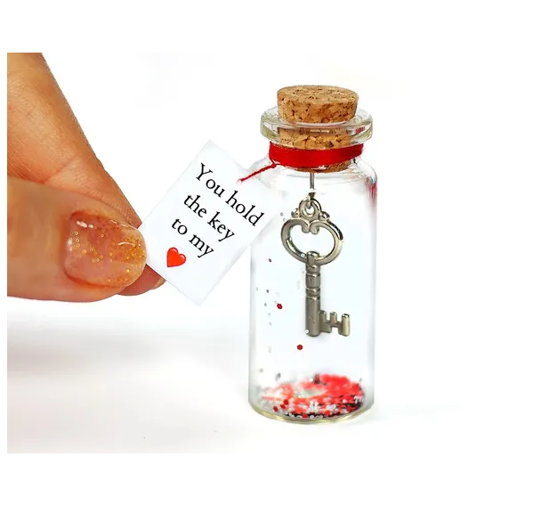 unique romantic and valentines day gifts for him or her lovely tiny key or heart in a jar with customizable message card, or big bottle and heart for you to choose