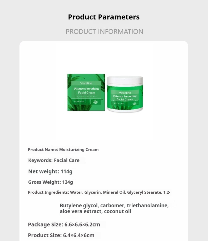 Ingredients: water, glycerin, mineral oil, glycerol stearate, 1,2-hexanediol, carbomer, triethanolamine, aloe extract, coconut oil.