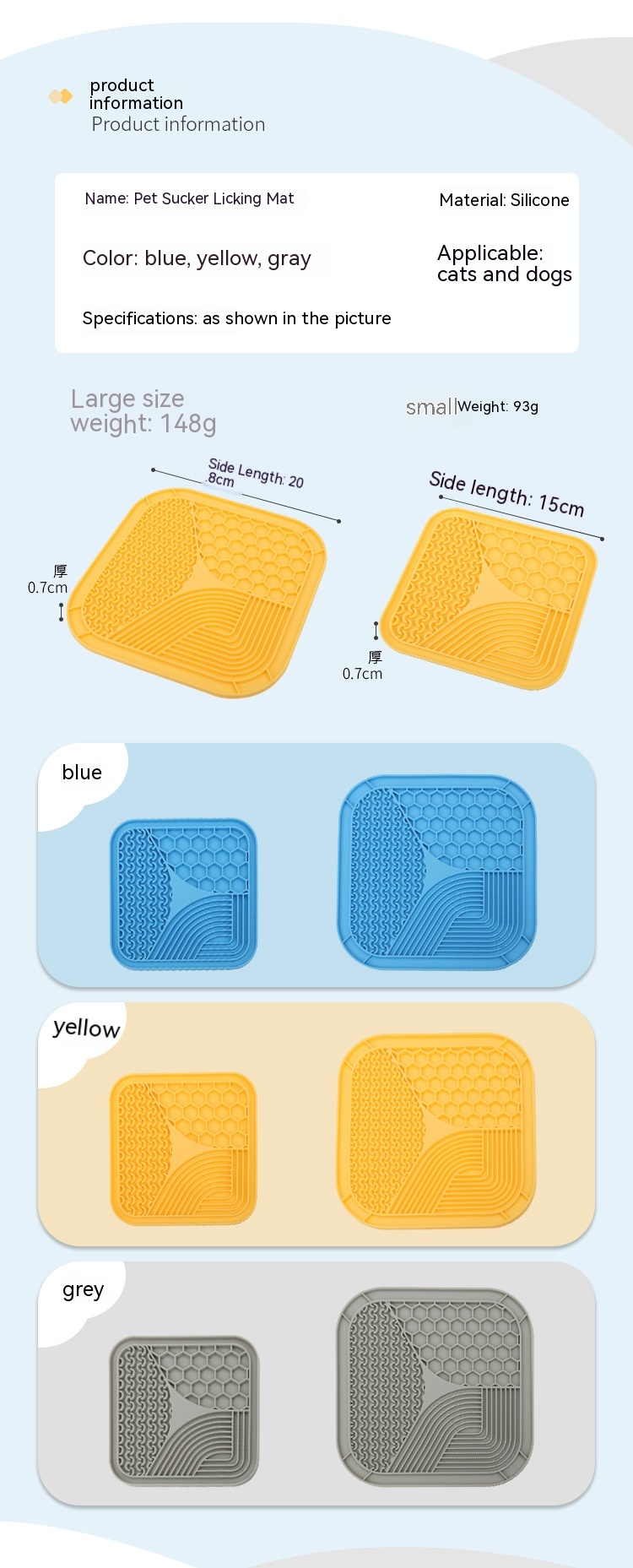 Specifications: Gray large-sized (20.8*20.8*0.7cm), blue plus size (20.8*20.8*0.7cm), Yellow large (20.8*20.8*0.7cm), gray small size (15*15*0.7cm), Blue Small size small size (15*15*0.7cm), yellow, small size small size (15*15*0.7cm)