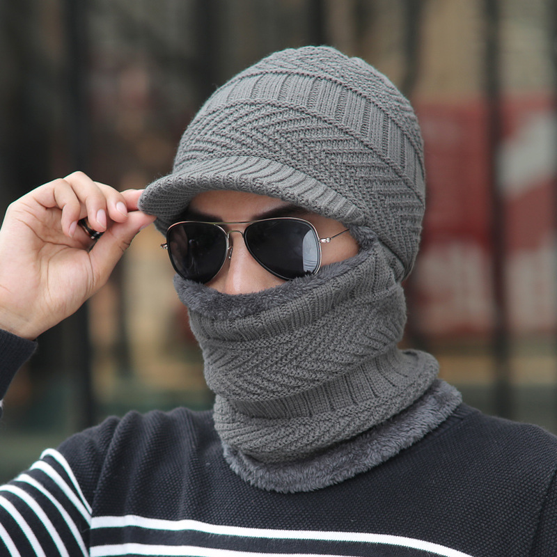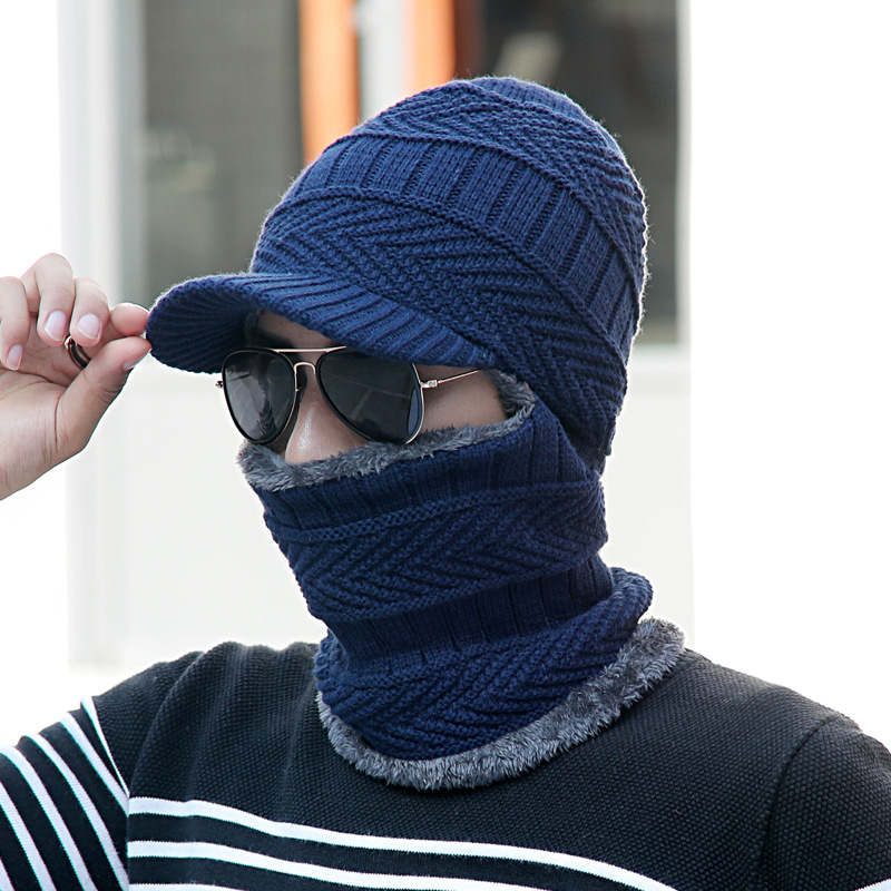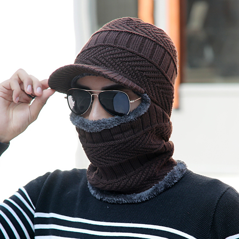 Anti-cold Integrated Hat Men's Autumn And Winter Warm Head Cover Open-eye Knitted Woolen Hat