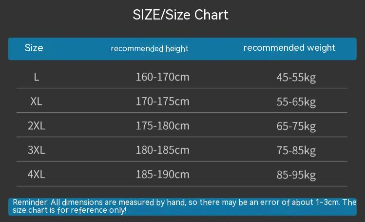 Size: L XL 2XL 3XL 4XL