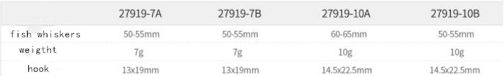 Specifications: 27919-7A (red and black dots), 27919-7B (cyan and black), 27919-10A (orange green), 27919-10B (white and green)