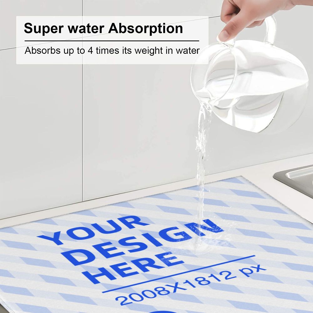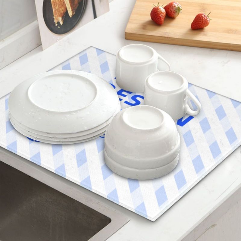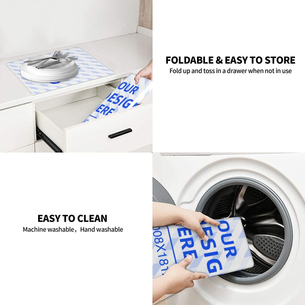Product performance: The surface of this dish drying pad is made of absorbent microfiber, and the middle is made of composite sponge, which can be easily rolled up, folded, stored or hung, and can absorb 4 times its weight in water, allowing your counter or The tabletop is kept dry. The drying pad has a beautiful print on the surface and solid grey on the reverse side. Absorbent, non-slip, reversible, colorful, cute prints that don't fade.