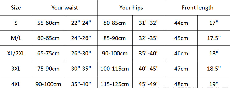 Size: S, M/L, XL/2XL, 3XL, 4XL