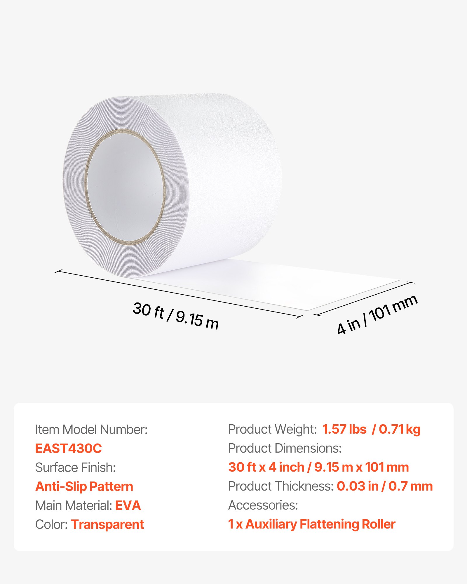 Anti-Slip Tape 30FT X 4inch Transparent Non-Slip Grip Tape Traction Treads