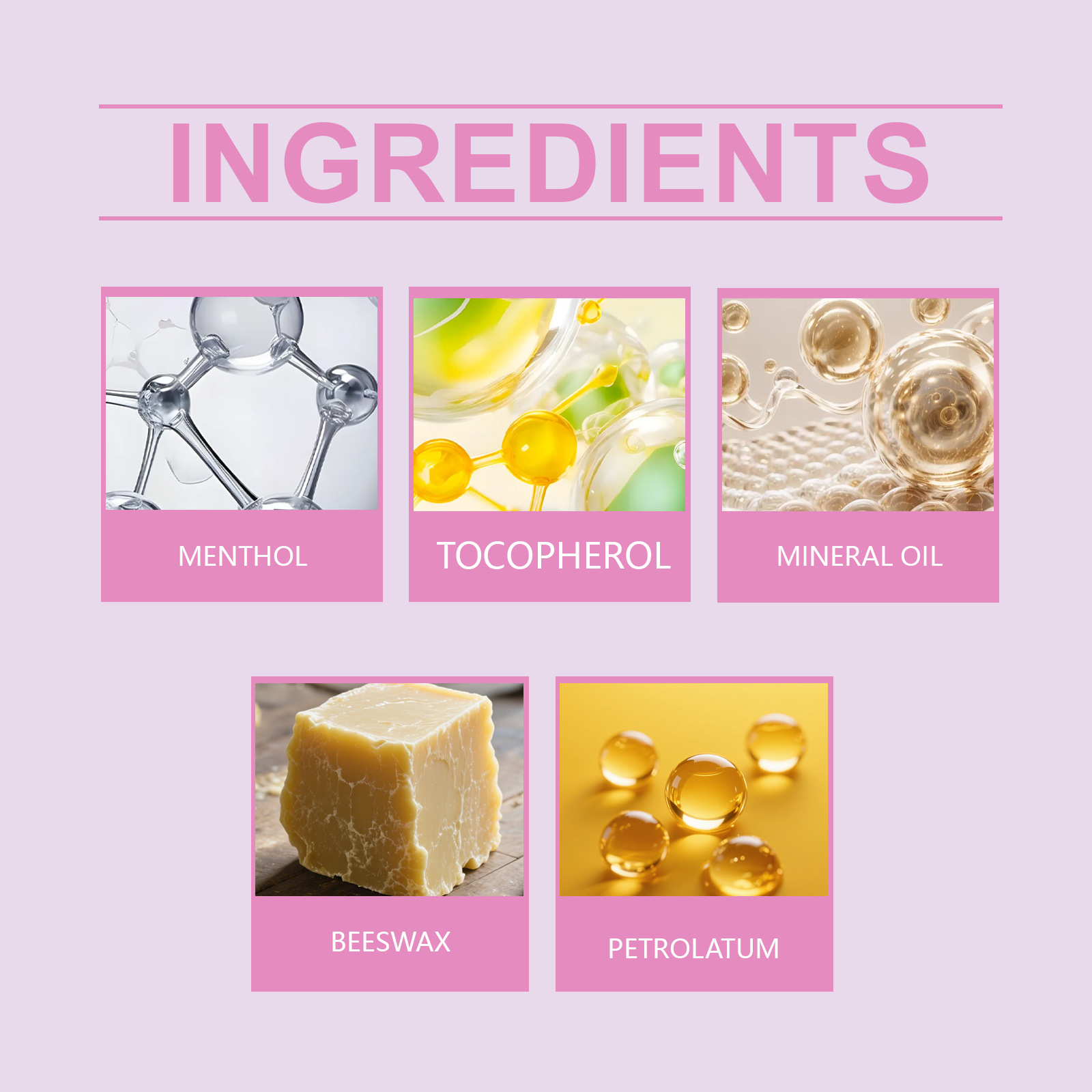 Active ingredients: menthol, tocopherol (vitamin E)