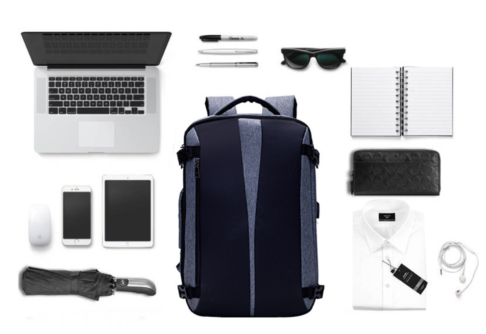Main Material: NYLONCapacity: 20-35 LSize: 45*32*16 cm / 17.71*12.59*6.29 inchFeature: Waterproof, USB charging, anti-theft