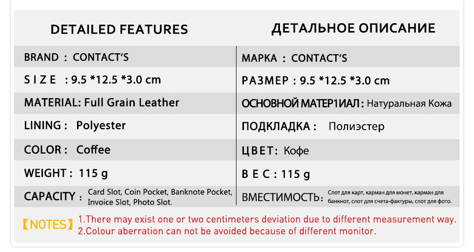 Internal structure of the bag: Large wallet, photo holder, coin pocket, zipper pocket, card position