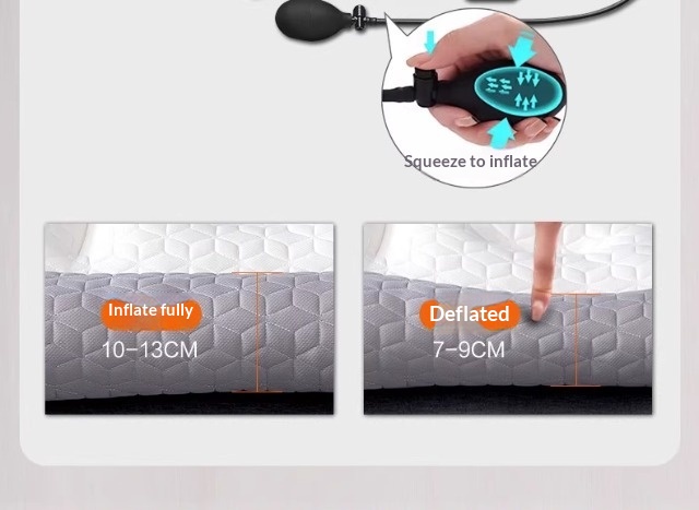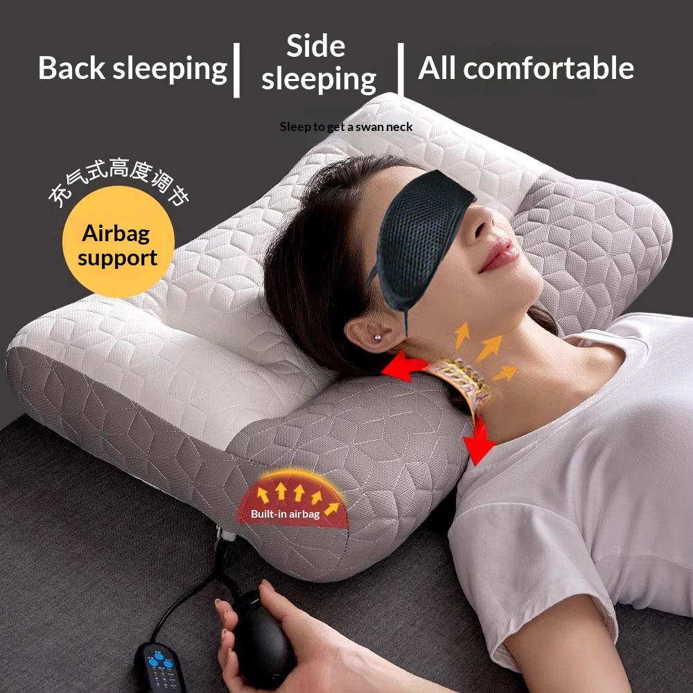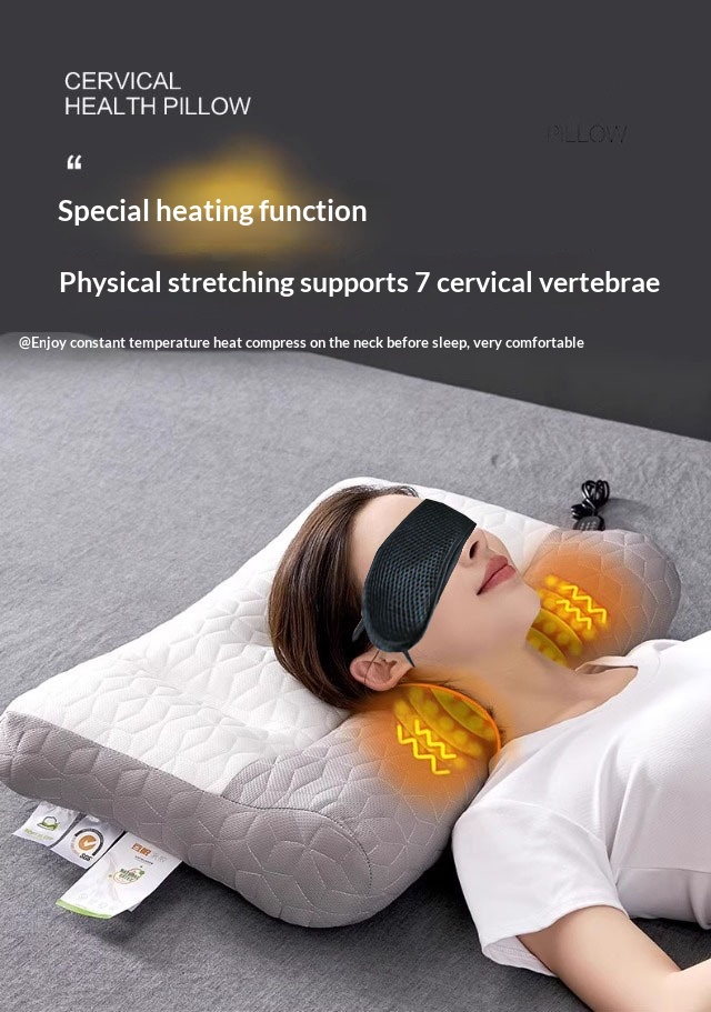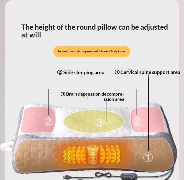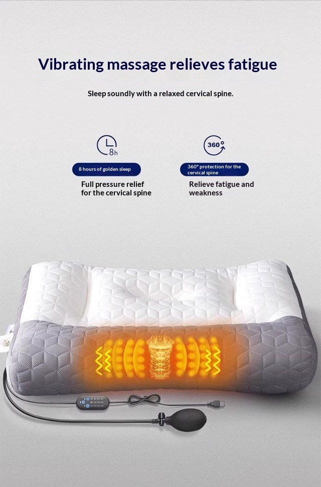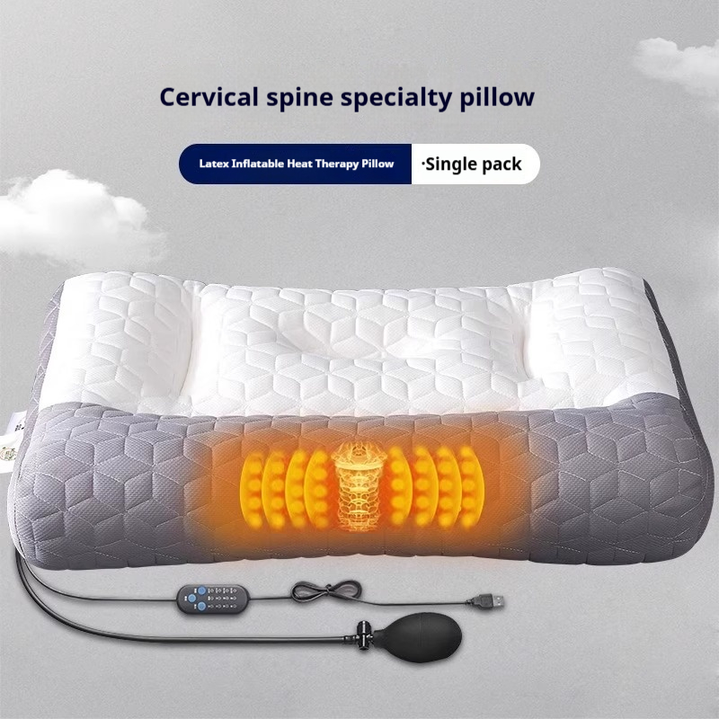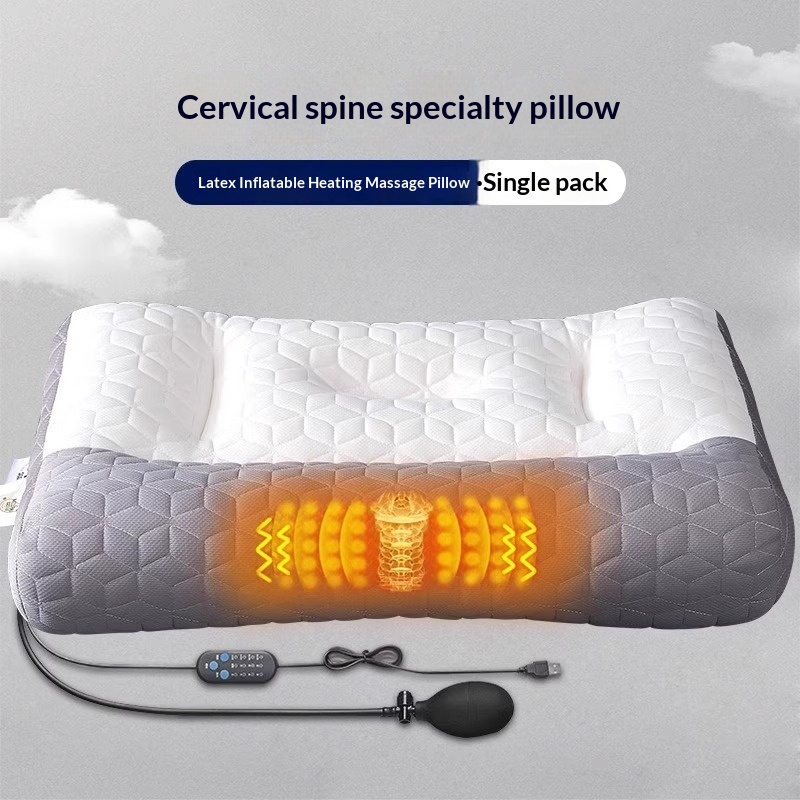 Colors: One-piece latex neck support pillow, one-piece latex heated compress inflatable pillow, one-piece latex massage heated compress inflatable pillow, charging adapter, pillowcase