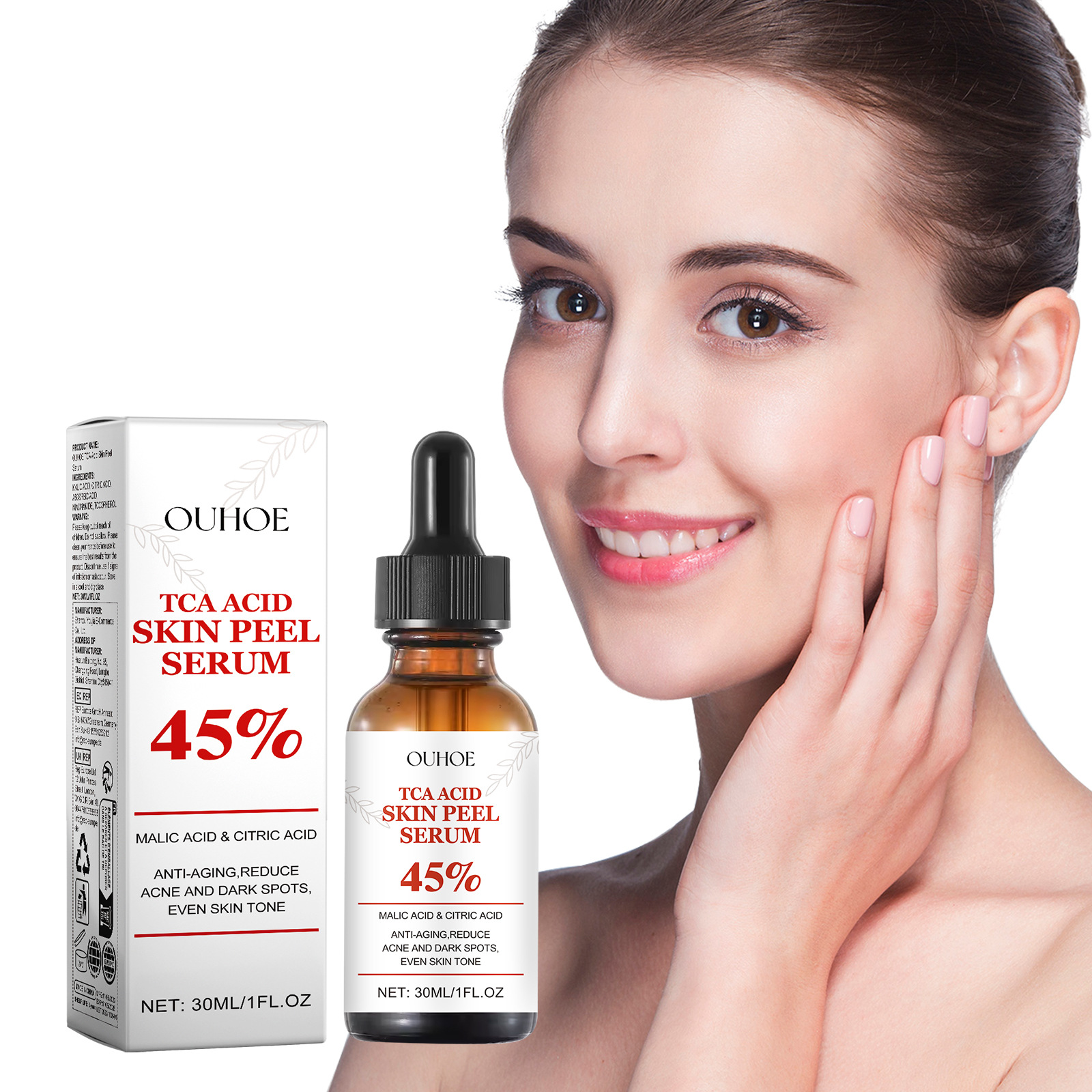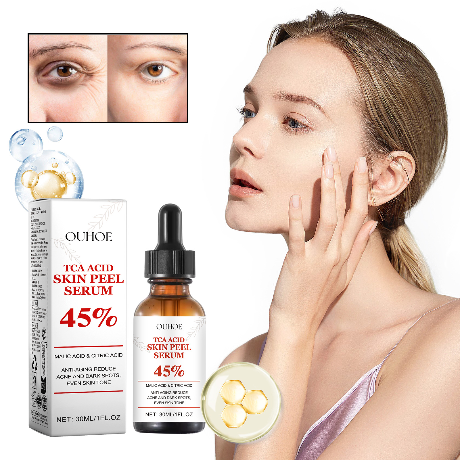 Ingredients: malic acid, citric acid, vitamin C, nicotinamide vitamin E