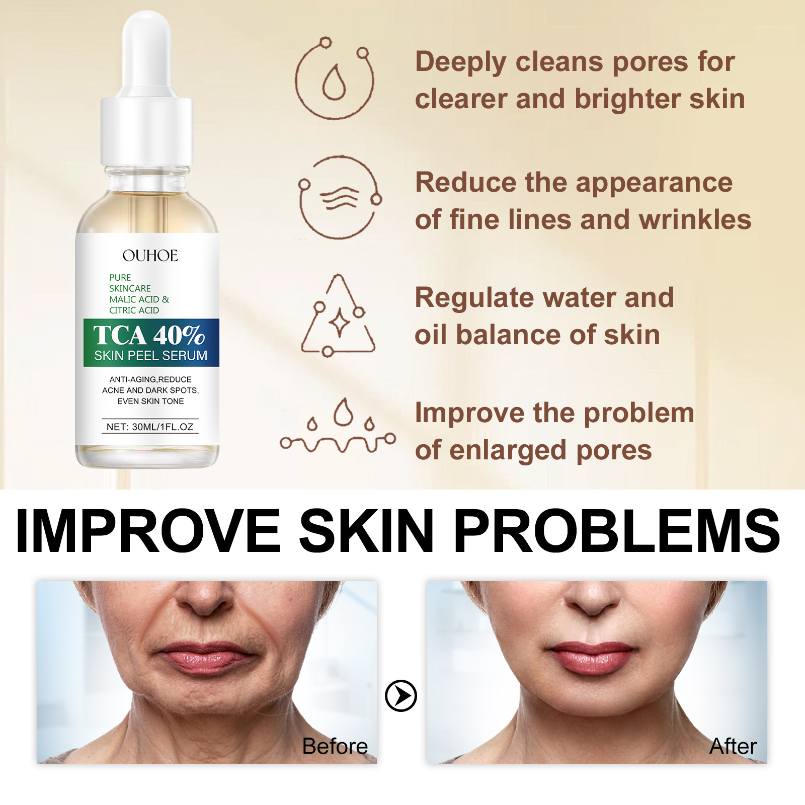 Ingredients: malic acid, citric acid, vitamin C, nicotinamide, vitamin E