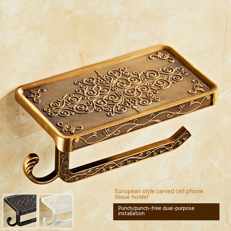 Antique Carved Mobile Phone Stand Bathroom Storage Organize The Shelves Tissue Holder
