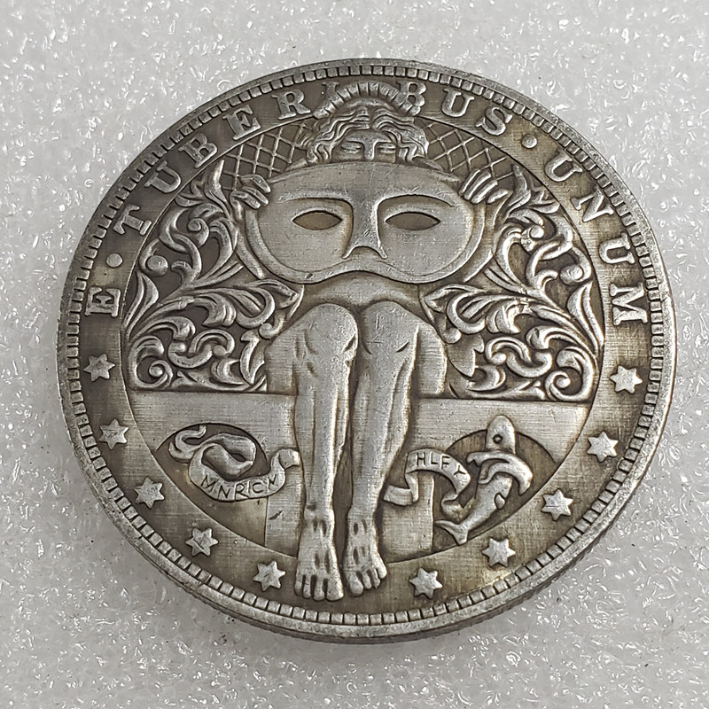 Antique Crafts Vagrant Mask Skull Cooperized Silver Distressed Silver Coin