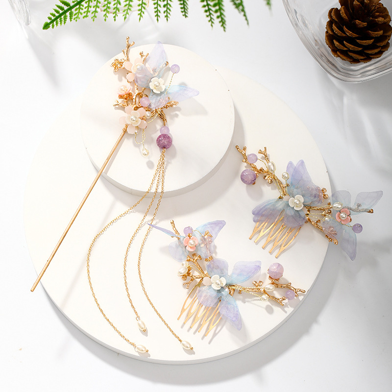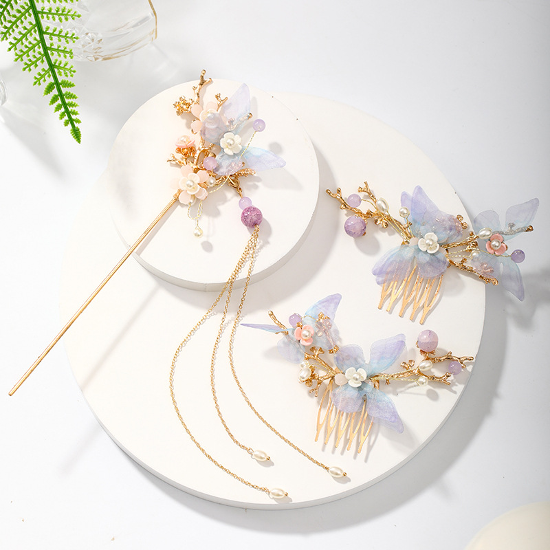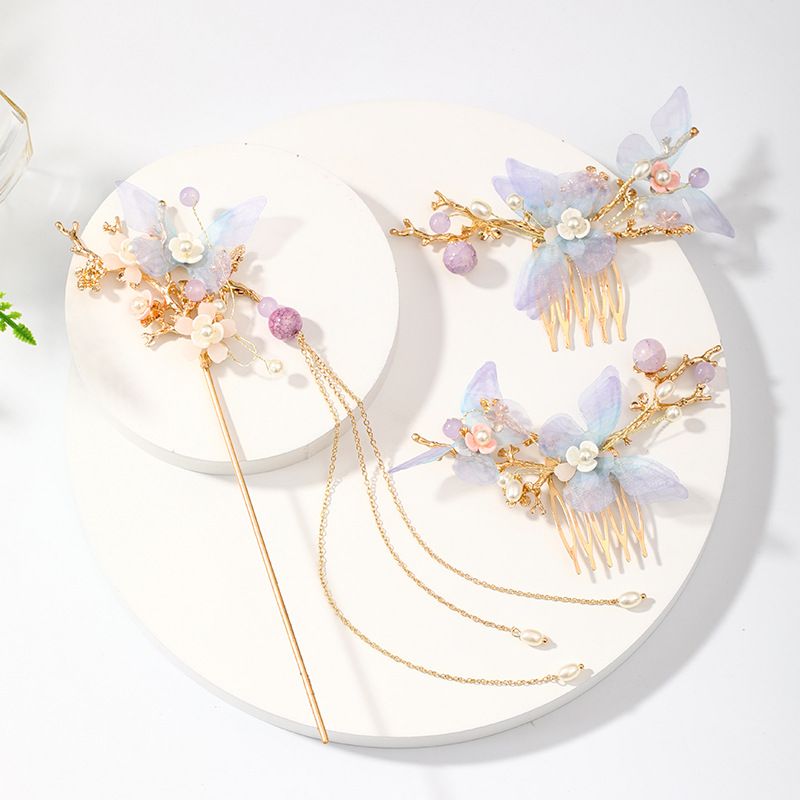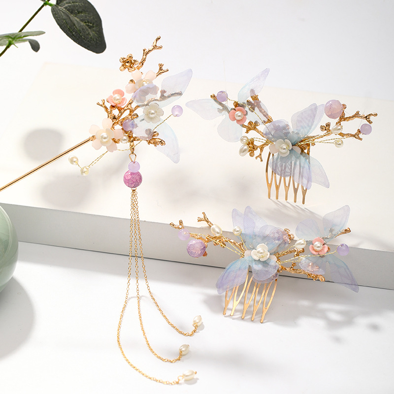 Product size: hair comb length 11*7cm tassel 21.5cmMaterial: AlloyStyle: RetroStyle: WomenShape: BowTreatment process: ManualColor: Blue