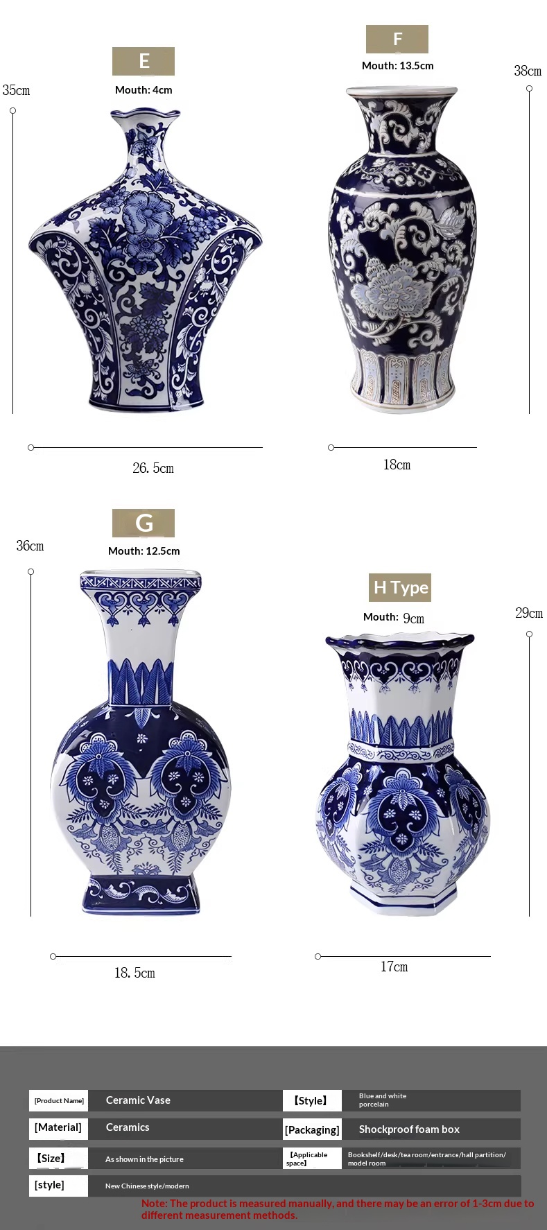 Product information:Material: Ceramic Flower Vase Type: Tabletop Vase Style: New Chinese Style