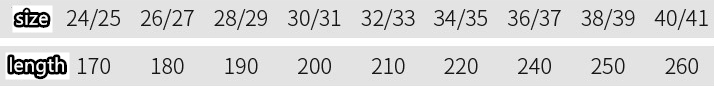 Sizes: 24-25, 26-27, 28-29, 30-31, 32-33, 34-35, 36-37, 38-39, 40-41