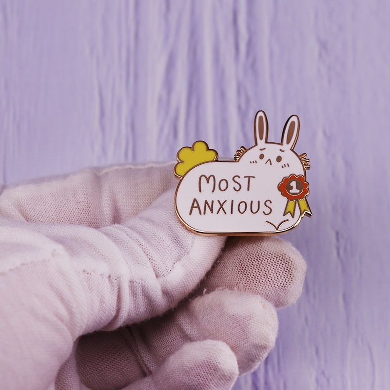 Anxiety Bunny Brooch Mental Health Awareness Badge